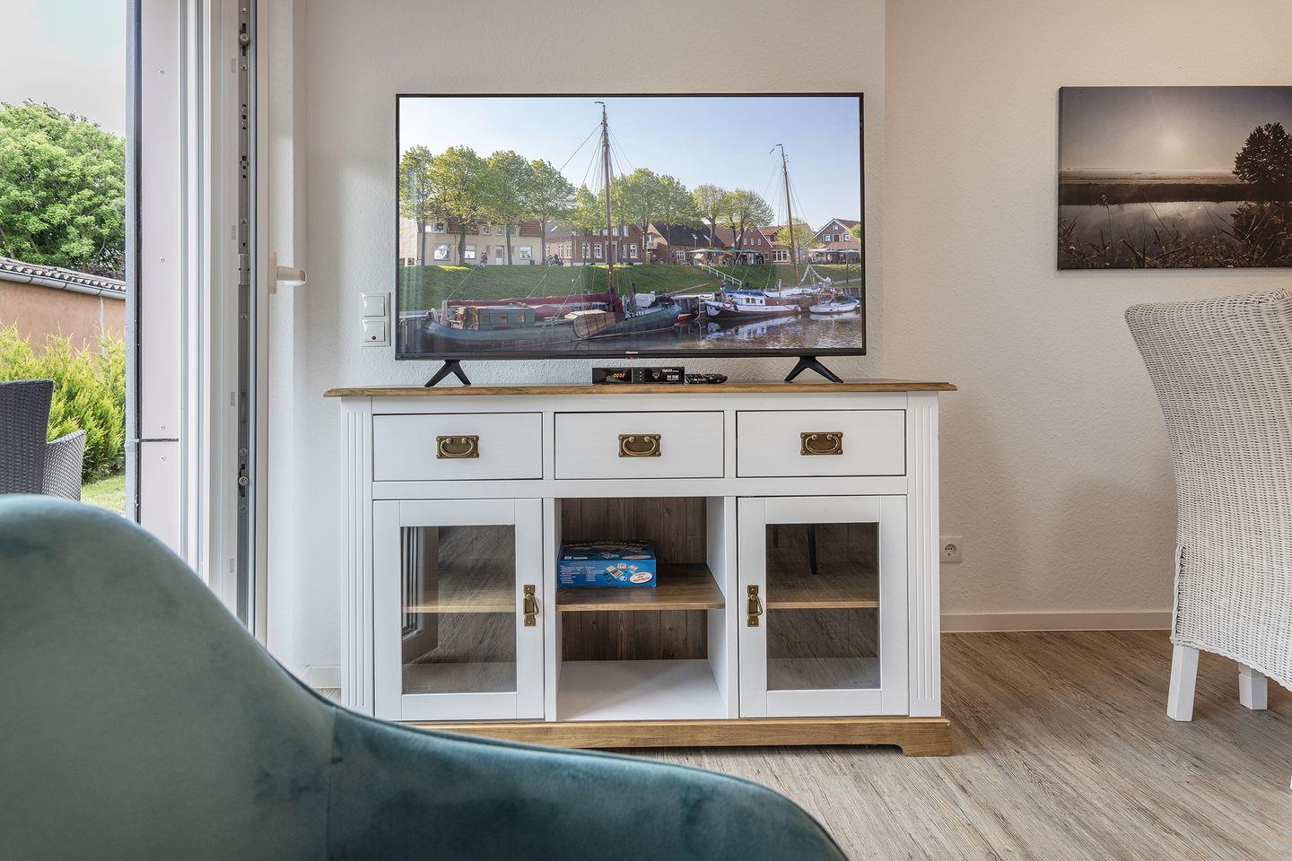 Genießen Sie erholsame Tage in dieser komfortablen, lichtdurchfluteten und modernen Ferienwohnung. Starten Sie den Urlaubstag mit einer erfrischenden Dusche. Egal wie viele Personen mit Ihnen gereist sind, aufgrund der räumlichen Trennung von WC und Dusche wird es keinen morgendlichen Stau bei den Sanitäranlagen geben. Frühstücken Sie gemütlich im offenen Wohn-Küchenbereich oder auf der Doppelterrasse. Beginnen Sie den Tag ohne großen Aufwand, denn absolut alles Wichtige (Museumshafen, Raddampfer, Ärzte, Restaurants, Cafés, Einkaufsmöglichkeiten, Physiotherapie, Spielplätze, Sielhafenmuseum, Textilläden, Bank, Friseur, Eisdielen…) finden Sie in unmittelbarer Nähe oder unter 300 Meter Fußweg. Nachdem Sie die Umgebung erkundet, die Inseln besucht, am Strand entspannt, das Museum erforscht oder eine Fahrradtour gemacht haben, stärken Sie sich entweder in einem der naheliegenden Restaurants oder in der gut ausgestatteten Küche. Lassen Sie den Tag nun ausklingen bei einem schönen Film oder Buch auf dem Sofa oder bei einem Gläschen auf der Terrasse.