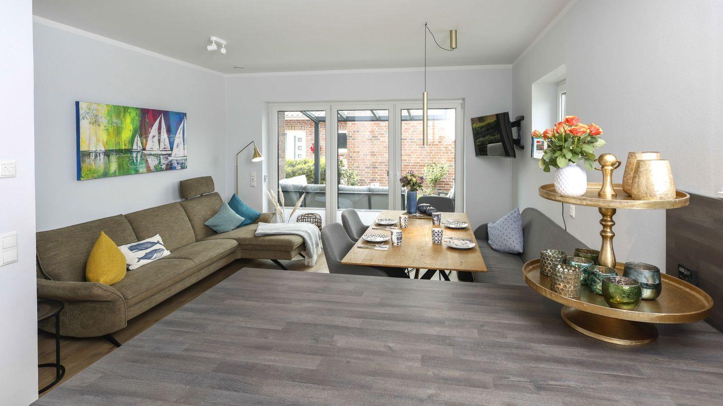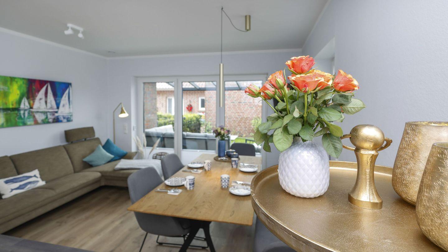 Modernes Ferienhaus Küstenglück Frieda in Carolinensiel mit Garten, Terrasse und familienfreundlicher Ausstattung.