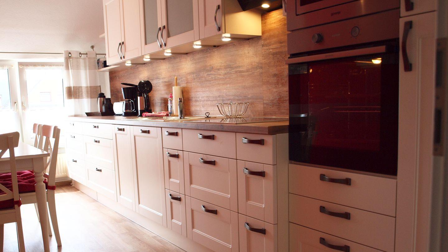 Die Ausstattung der Ferienwohnung lässt keine Wünsche offen. In der voll ausgestatteten Küche finden Sie einen Herd mit Ceranfeld, einen Elektro-Backofen, eine Spülmaschine sowie einen Kühlschrank mit Gefrierfach. Hier können Sie Ihre Kochkünste ausleben und gemeinsam mit Ihren Lieben am Esstisch im Essbereich zu einem schmackhaften Essen zusammenkommen. Zudem stehen Ihnen praktische Küchenutensilien und eine Mikrowelle zur Verfügung, um Ihren Aufenthalt so angenehm wie möglich zu gestalten.
