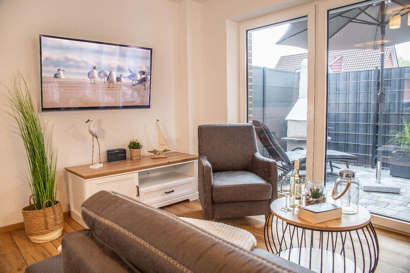 Moderne Doppelhaushälfte in Carolinensiel mit Terrasse, Carport und kostenlosem WLAN, nur 800 m vom Strand entfernt.