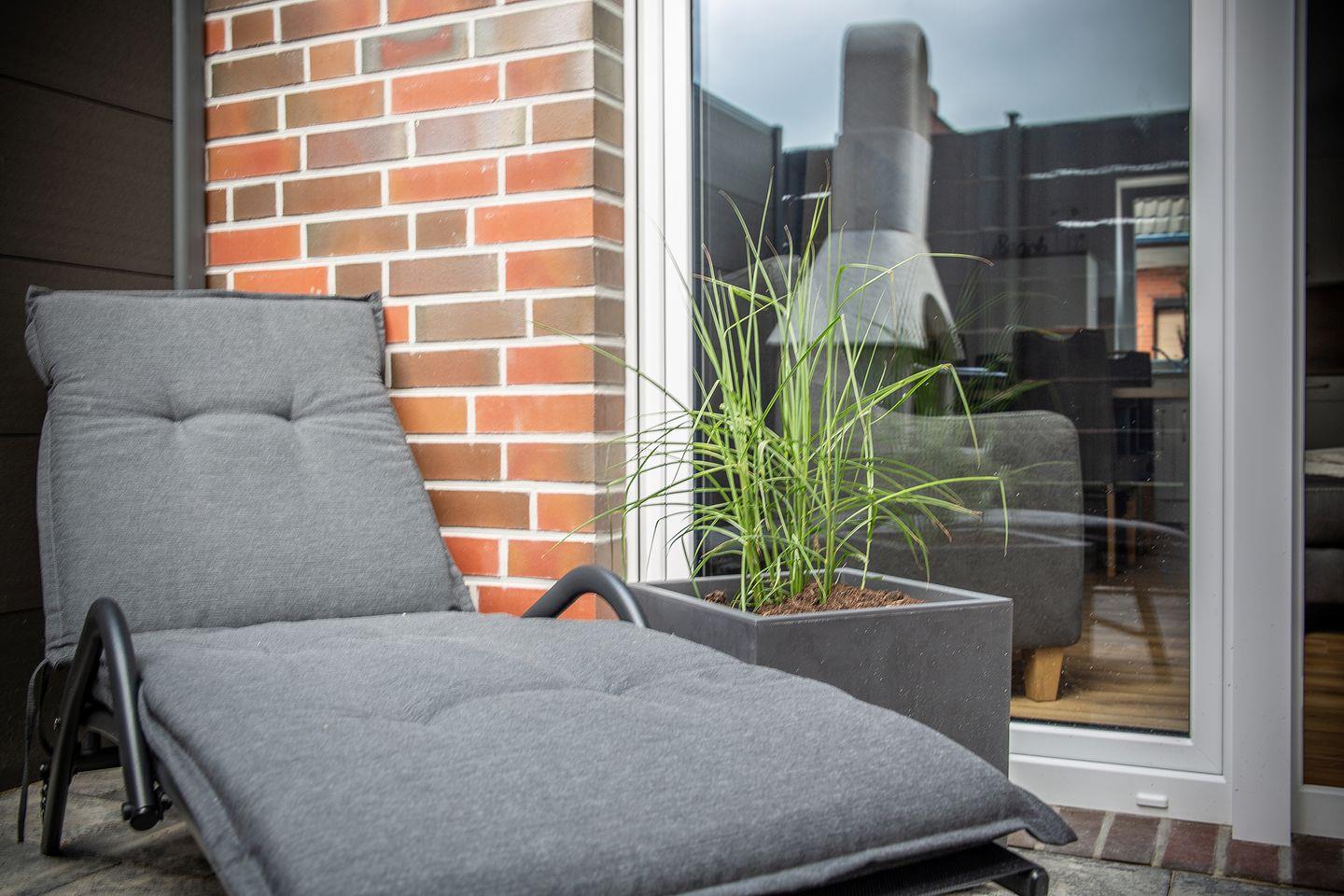 Der Außenbereich des Ferienhauses verfügt über eine möblierte Terrasse in Südausrichtung und lädt zur Erholung ein. Es