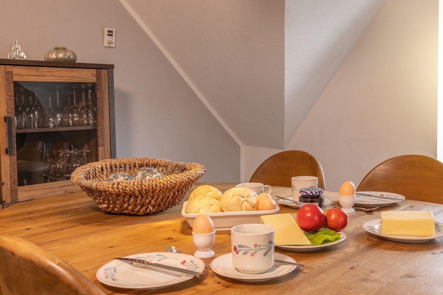 Gemütlich eingerichtete Ferienwohnung im Ober- und Dachgeschoss (Maisonettenstil) für 4 Personen + Kleinkind, 60 qm.