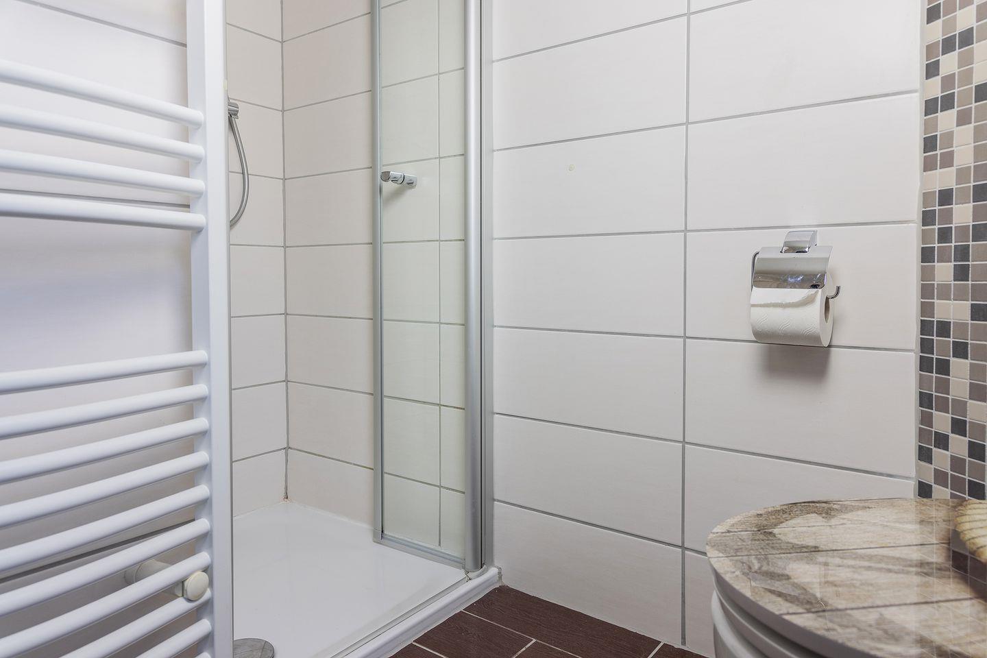 Eine Münz-Waschmaschine befindet sich im Gemeinschafts-Waschraum des Hauses.