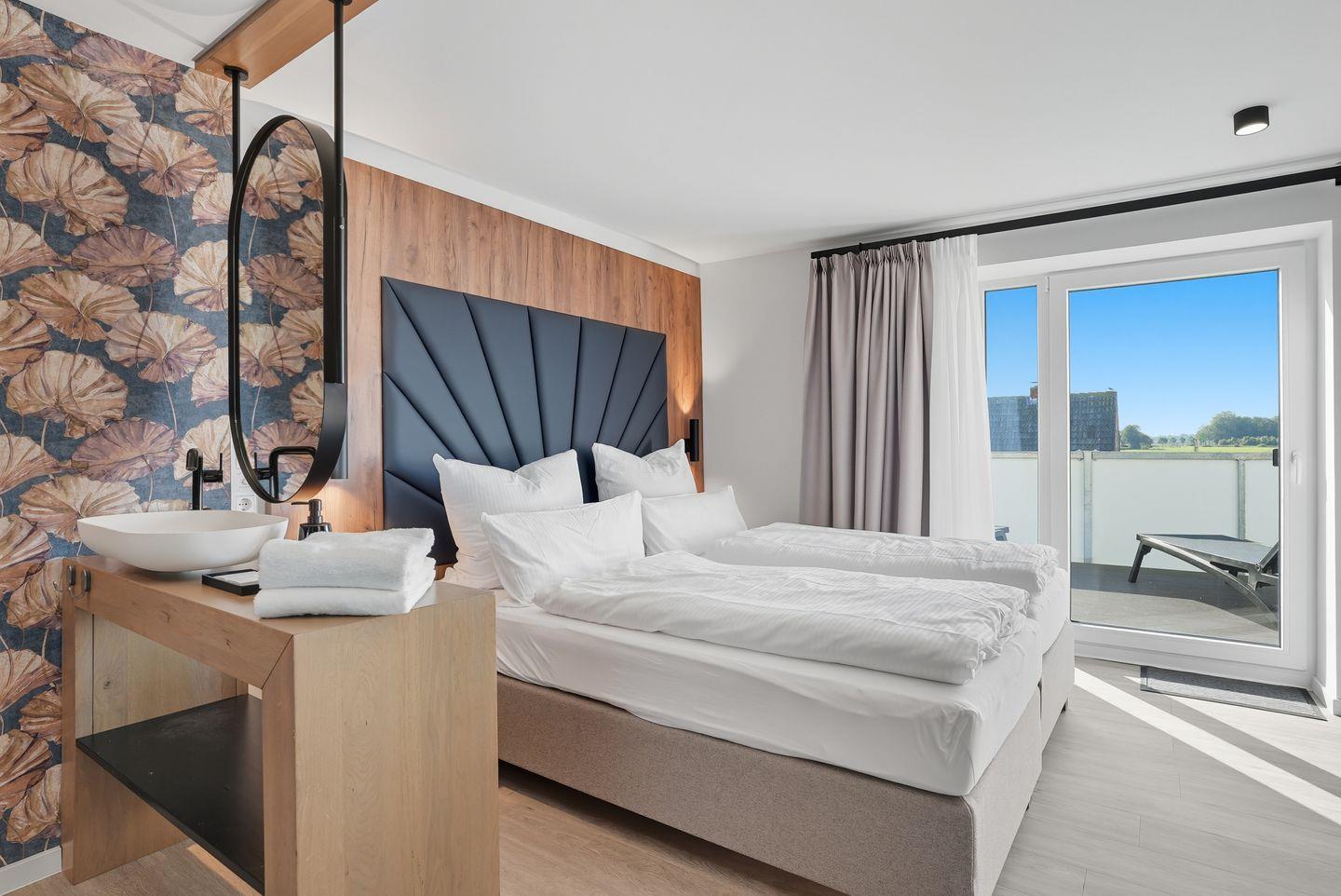 Willkommen in unserer besonderen Ferienwohnung in Carolinensiel! Hier erwartet Sie modernes Design mit einem integriertem Bad im Schlafzimmer. Genießen Sie den Komfort eines hochwertigen Badezimmers und den Ausblick auf die Landschaft. Eine geschmackvoll eingerichtete offene Küche und ein großzügiges Wohnzimmer laden zum Entspannen ein. Entdecken Sie Komfort und Gemütlichkeit für einen unvergesslichen Urlaub! Freuen Sie sich auf Ihre Zeit bei uns!