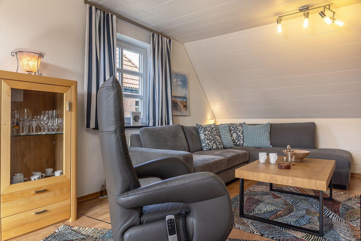 Gemütliche Obergeschosswohnung nahe Kurzentrum und Strand mit Balkon, Küche und Dachstudio für erholsame Ferien.