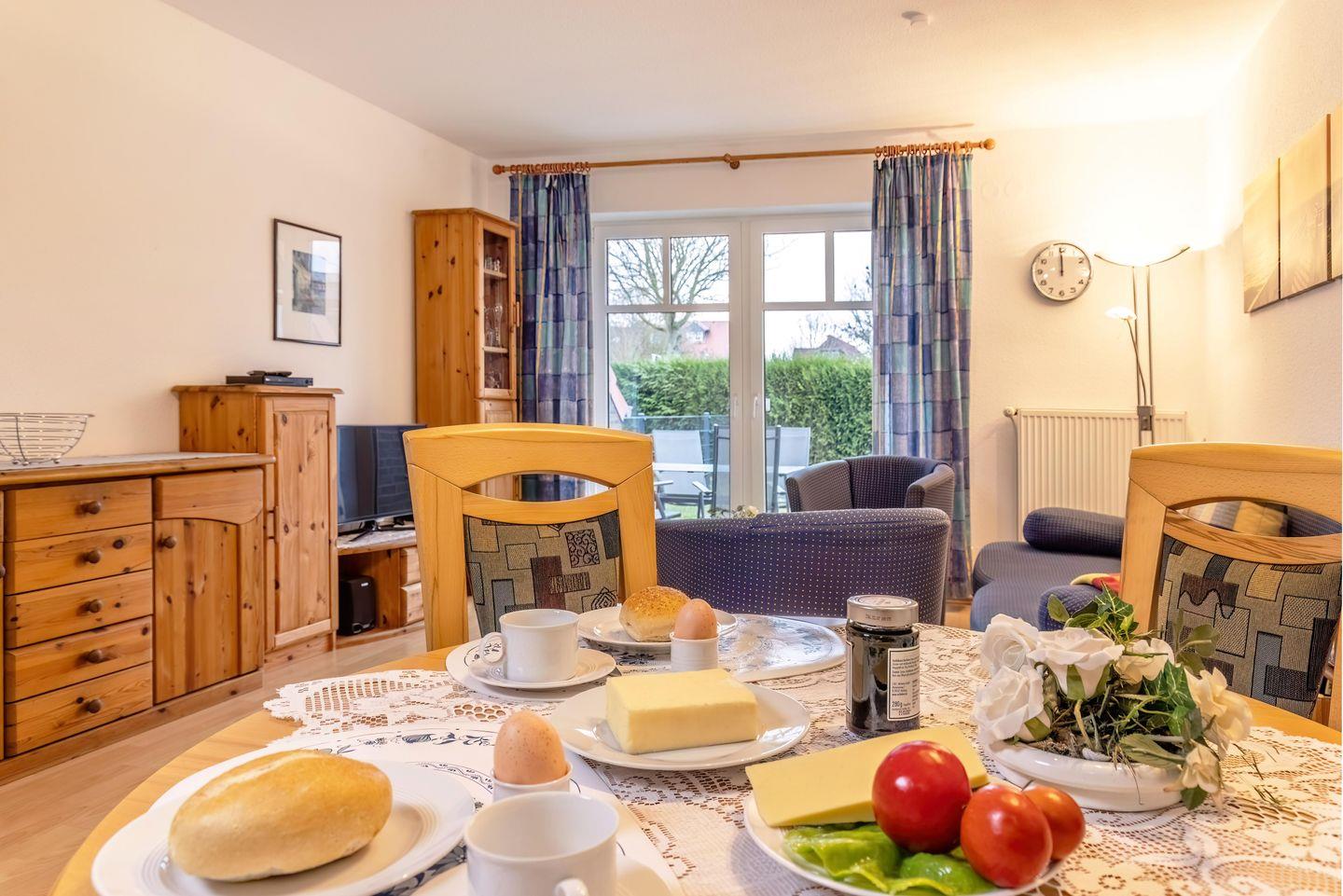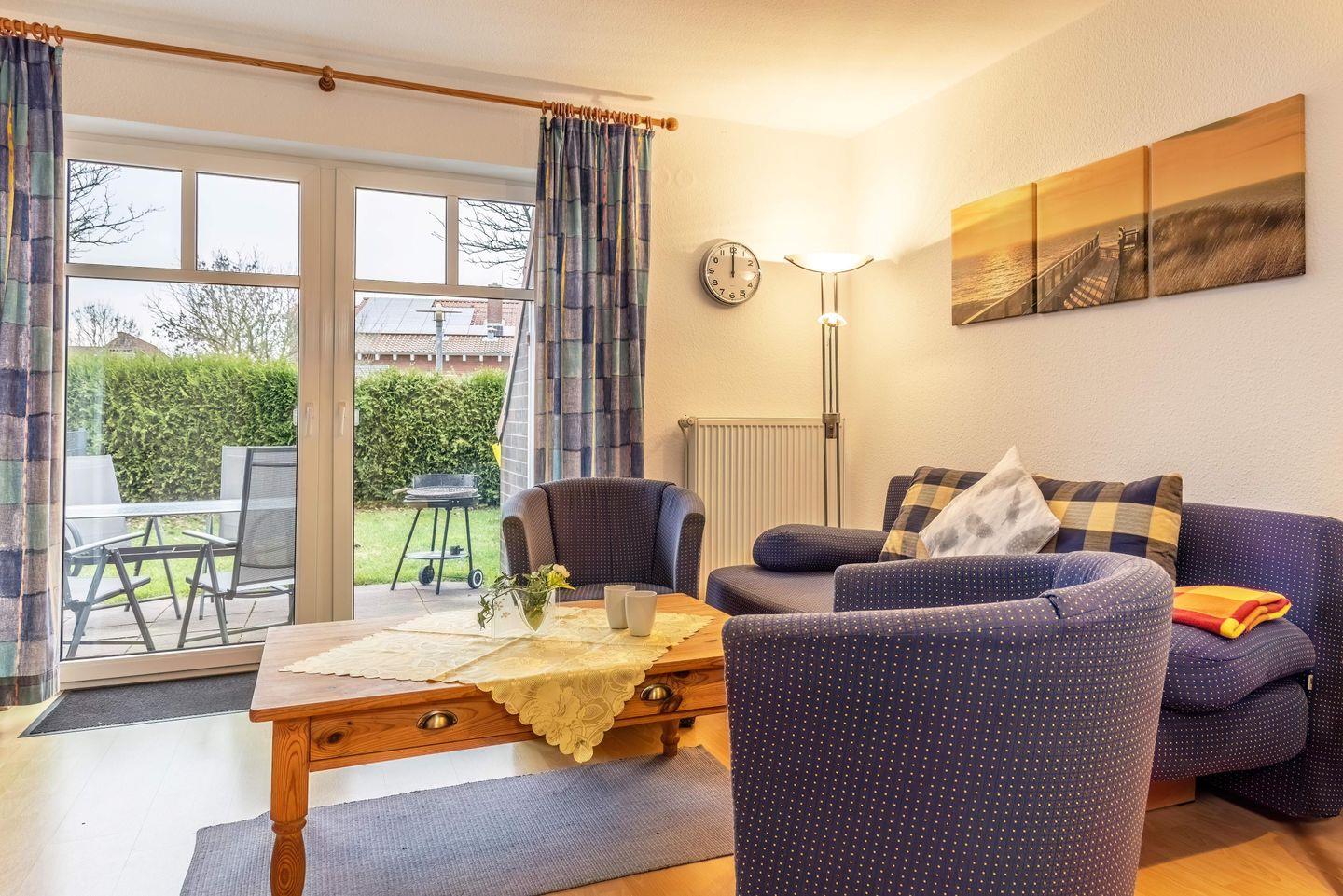 Dieses gemütliche Reihenmittelhaus an der Nordseeküste bietet auf ca. 65?m² Wohnfläche alles, was Sie für einen entspannten Urlaub brauchen. Im Erdgeschoss erwarten Sie ein großzügiger Wohn- und Essbereich mit integrierter Küchenzeile sowie ein Gäste-WC. Vom Wohnzimmer aus gelangen Sie direkt auf die möblierte Südterrasse und in den Garten.