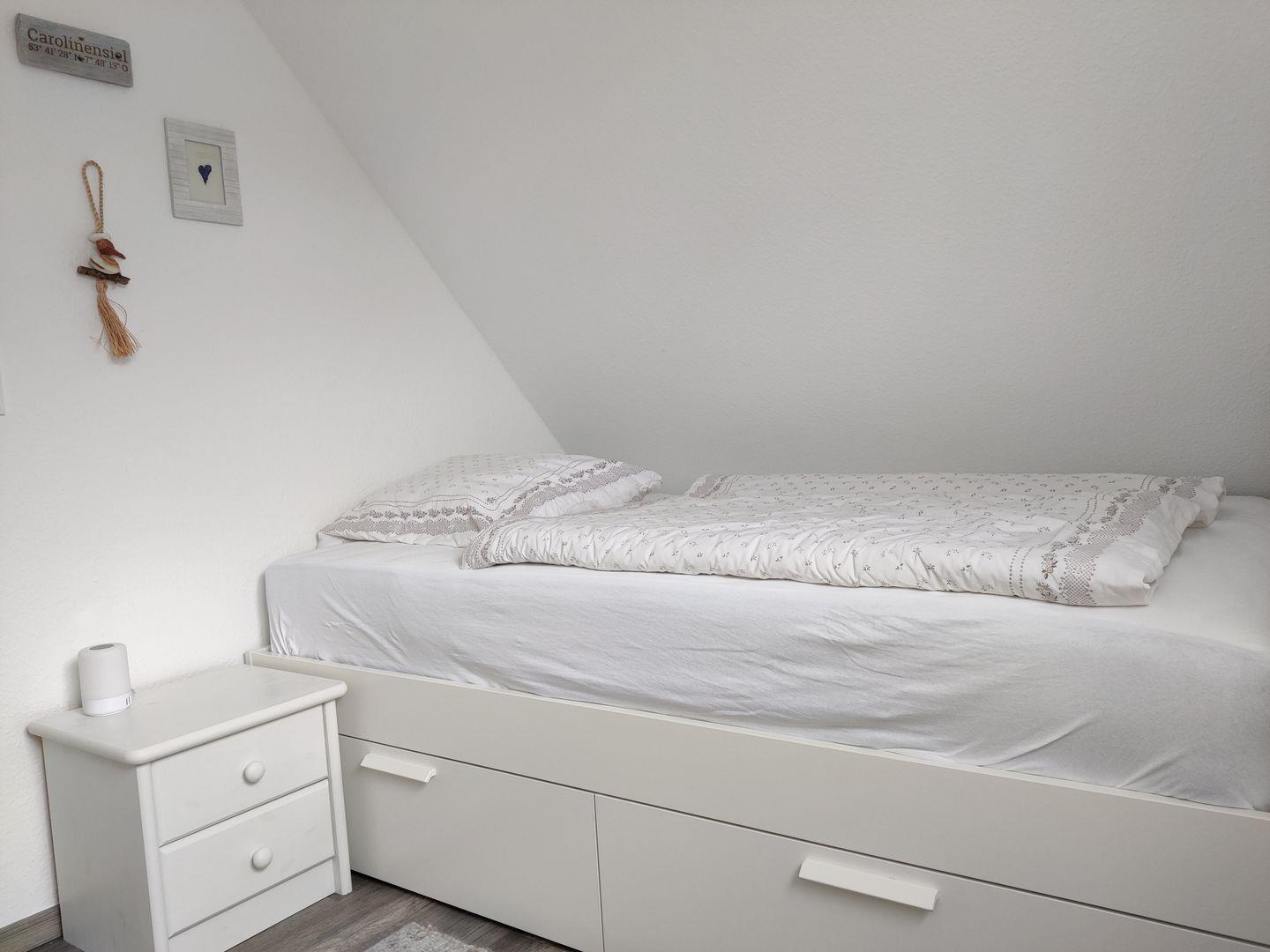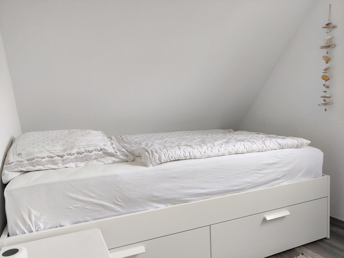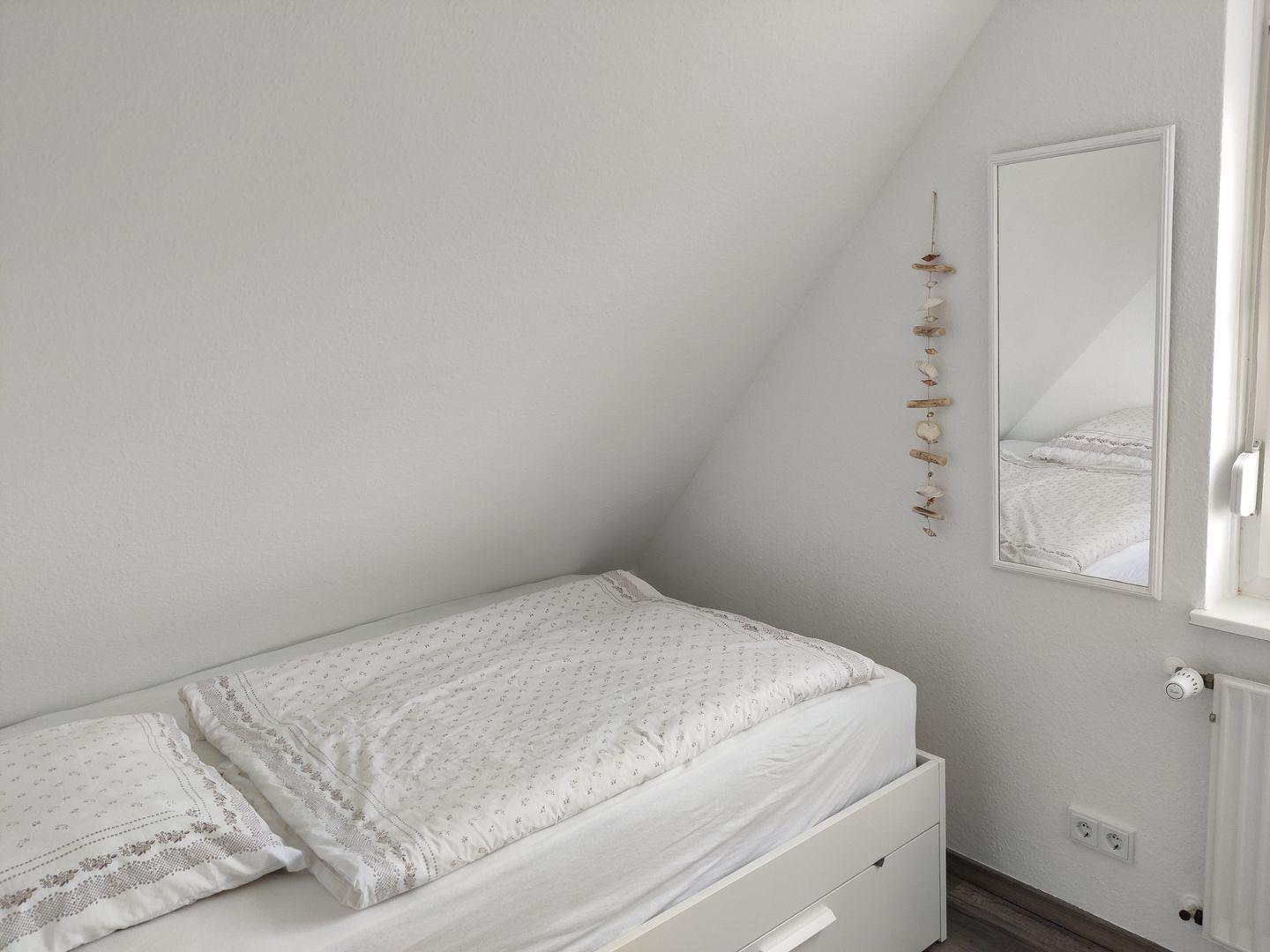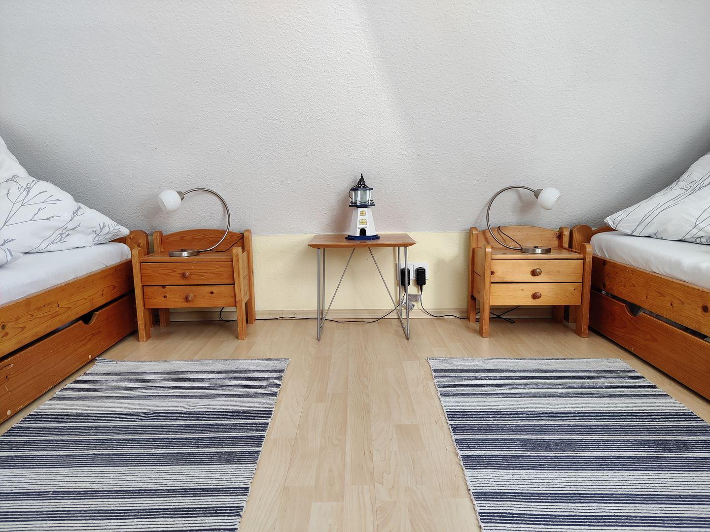 Im 2. Obergeschoss gibt es zwei weitere Einzelbetten (je 90 × 200 cm), die zusätzlichen Schlafplatz bieten.