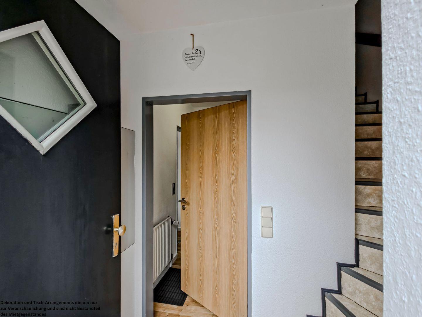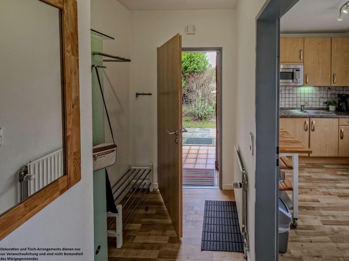 Schon beim Eintreten spüren Sie die angenehme Atmosphäre: Im einladenden Flur finden Jacken und Schuhe ihren Platz, ein kurzer Blick in den Spiegel – und der Urlaub kann beginnen.
