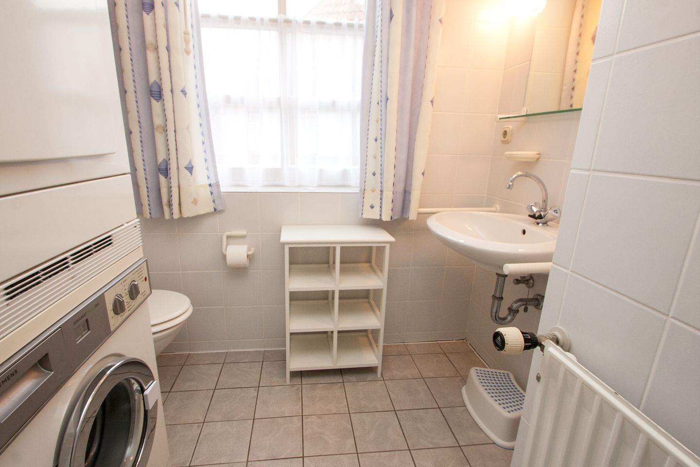 Bad mit Dusche, Waschmaschine, Trockner, Rollläden an allen Fenstern