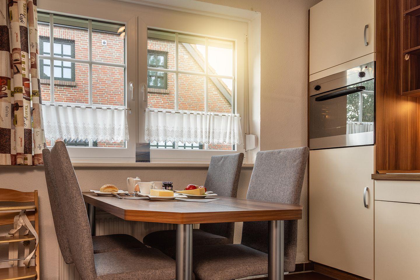 Komplett ausgestattete, separate Einbauküche mit Essplatz