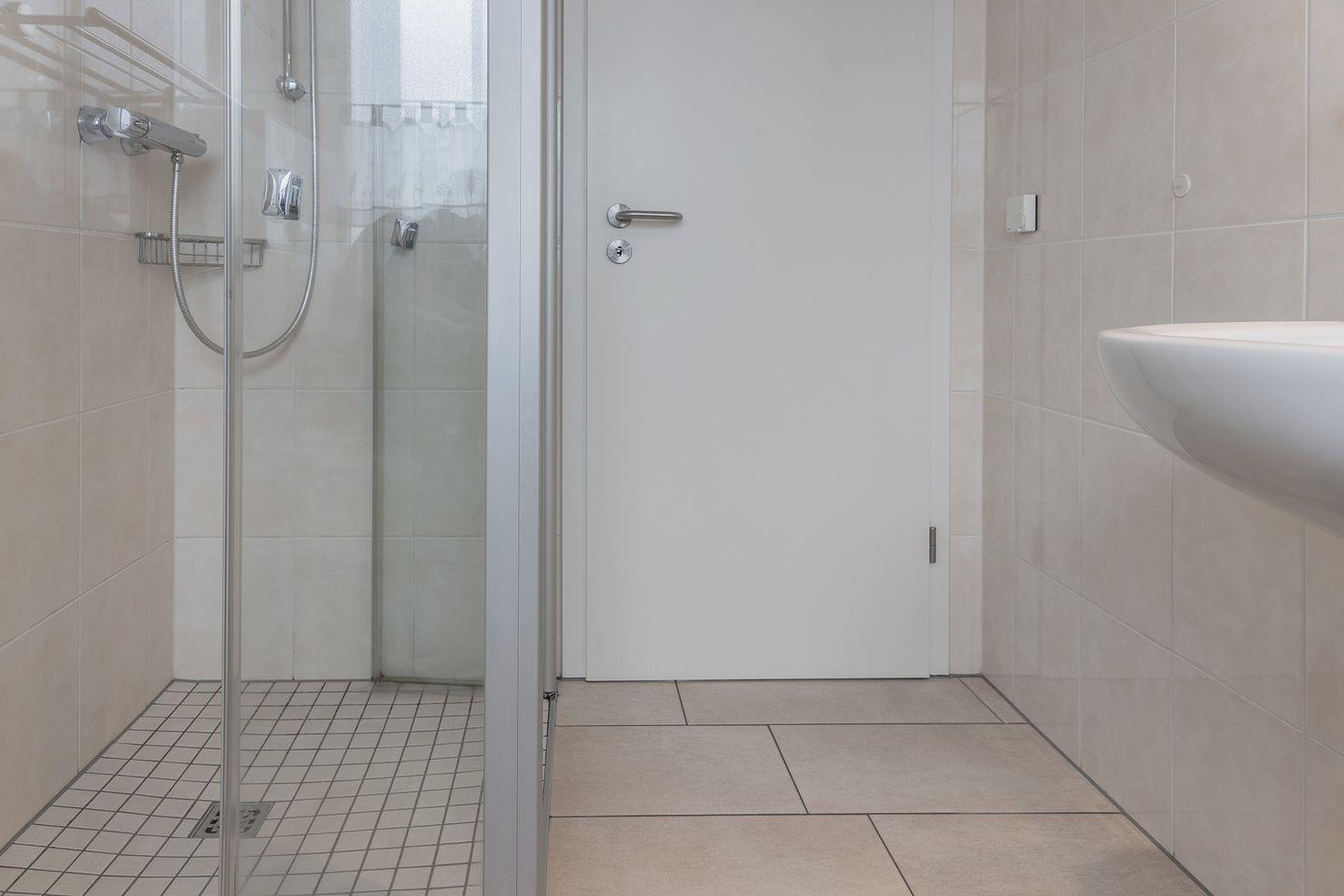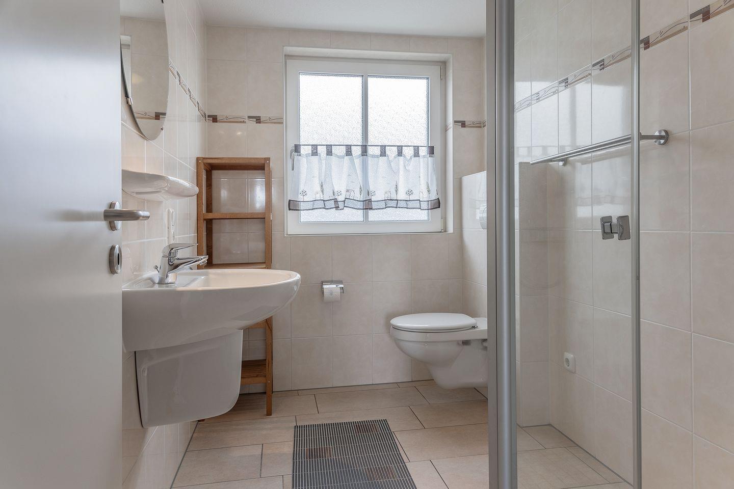 Bad mit Dusche und WC, Waschmaschine und Trockner sind ebenfalls vorhanden.