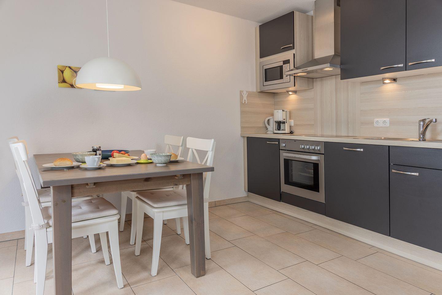 Angegliedeter Küchenbereich mit Essplatz.
