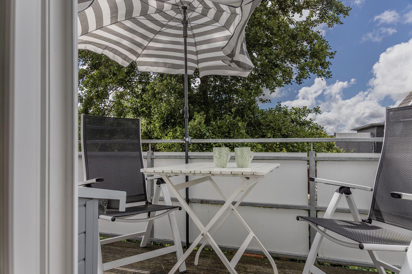 Neuzeitlich und modern: Die helle, wohlfühl Obergeschoss-Wohnung bietet Platz für 2 Personen und 1 Kleinkind. Auf dem kleinen, kuscheligen Balkon macht das Sonnenbaden richtig Spaß.