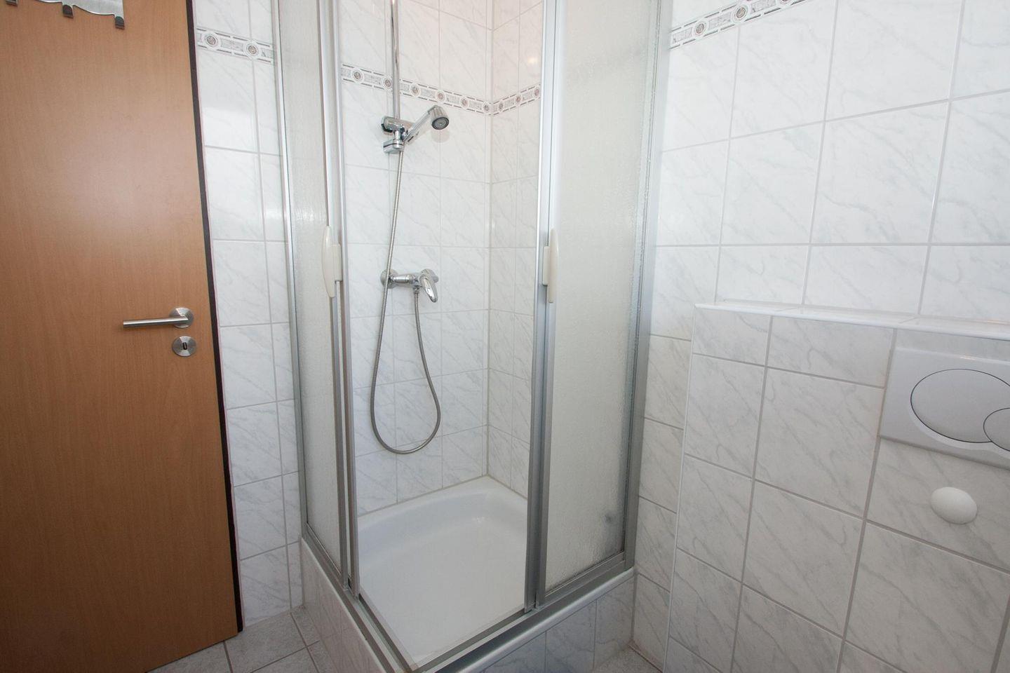 Bad mit Dusche und WC. Waschmaschine und Trockner stehen gegen Gebühr zur Verfügung.
