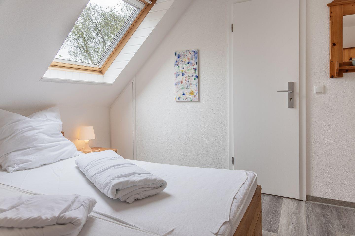 Schlafzimmer mit Doppelbett, modernes Bad mit Dusche/WC.