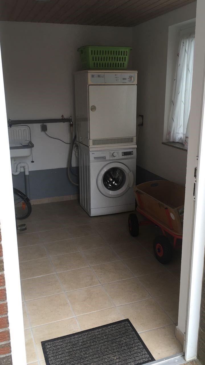 • Abstellraum mit Waschmaschine/Trockner und Platz für Fahrräder am Haus