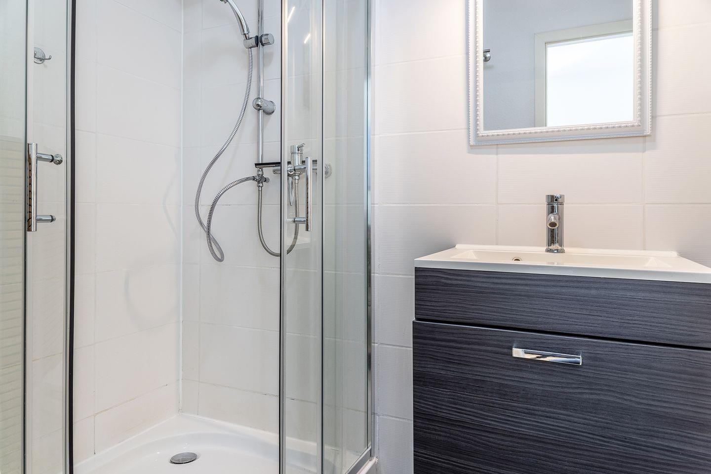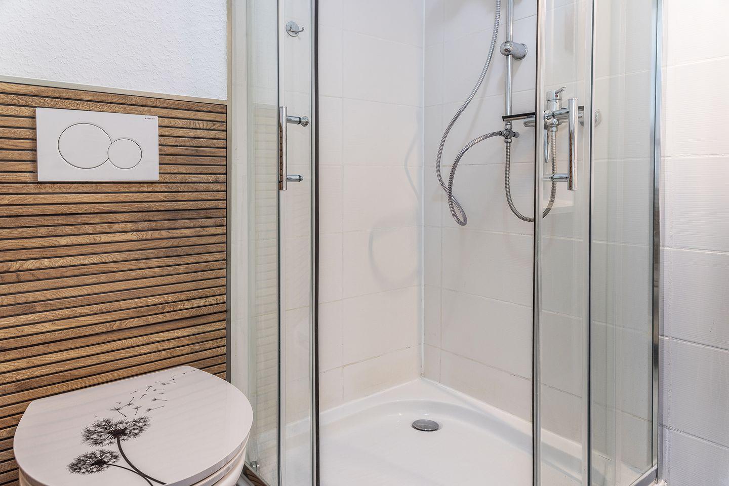 Dusche, Toilette, Handwaschbecken & Haartrockner