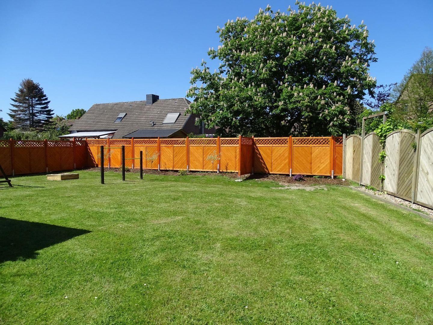 Der große Garten ist für die Wohnungen des Hauses nutzbar.