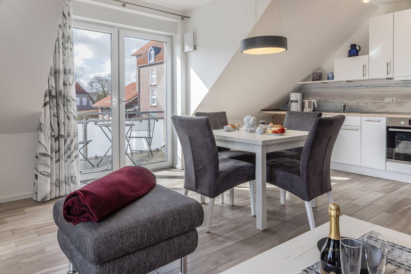 Moderne Ferienwohnung in Carolinensiel mit Balkon, voll ausgestatteter Küche und Fahrradverleih in Strandnähe.
