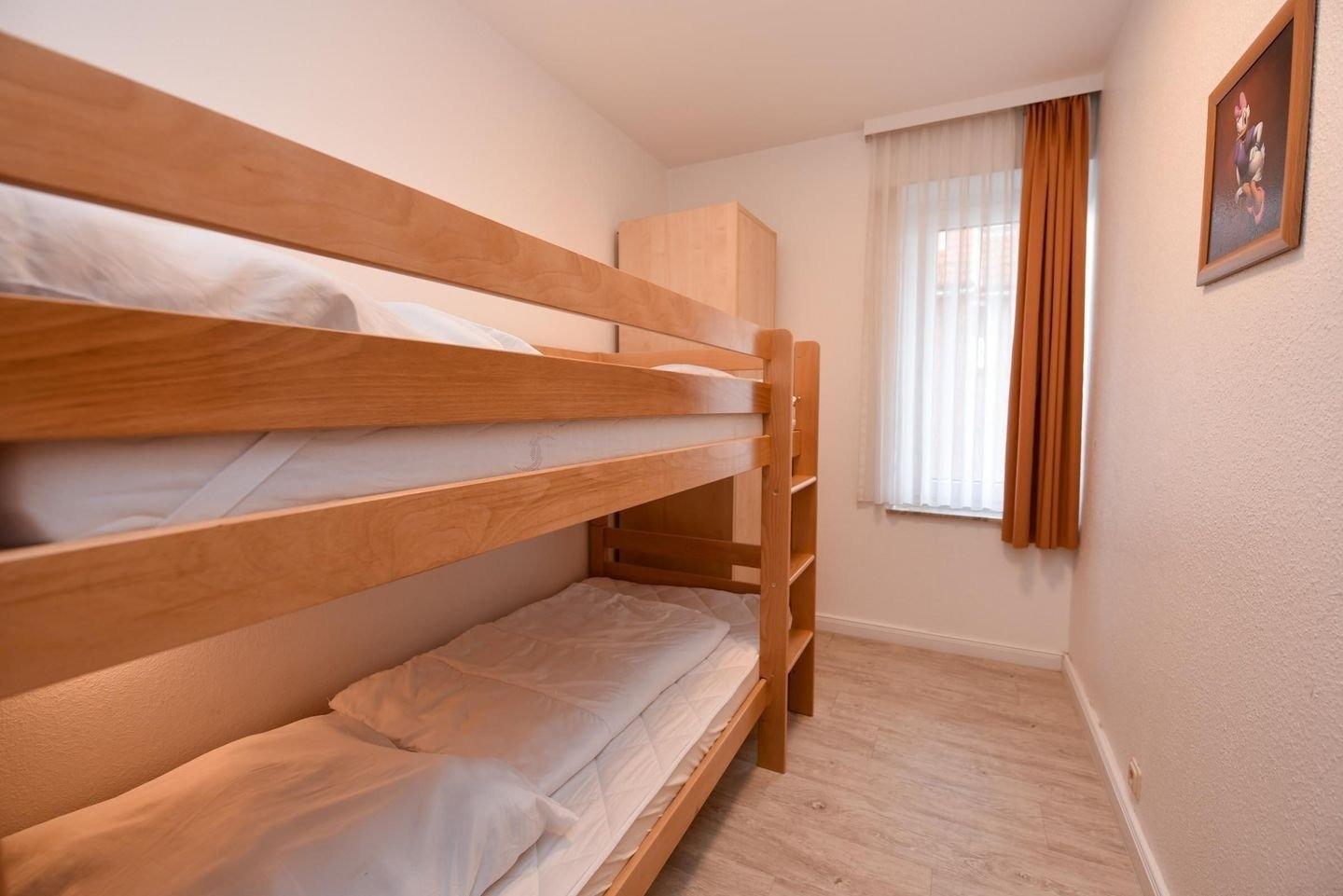 4-Zimmer Appartement im Haus "Nige Wark". Elternschlafzimmer mit Doppelbett und zwei Kinderzimmer mit jeweils einem Etagenbett. Geräumiges Wohnzimmer mit 2 Zweisitzer-Sofa, Flachbild-Tv und integrierter Küchenzeile die u.a. mit Spülmaschine, Mikrowelle und Kühlschrank mit Gefrierfach ausgestattet ist . Badezimmer mit Dusche und WC. Größe ca. 48qm. Erdgeschoss mit Terrasse zur Seeseite.