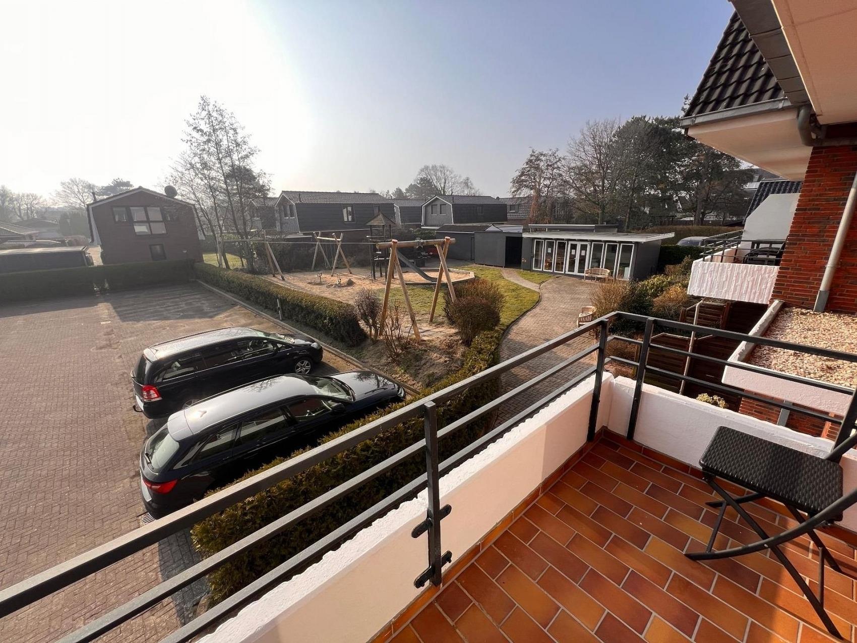 - Einen großen Balkon mit Blick in den Garten und zum Spielplatz, so dass Sie Ihre Kinder beim Spielen immer gut im Blick haben.