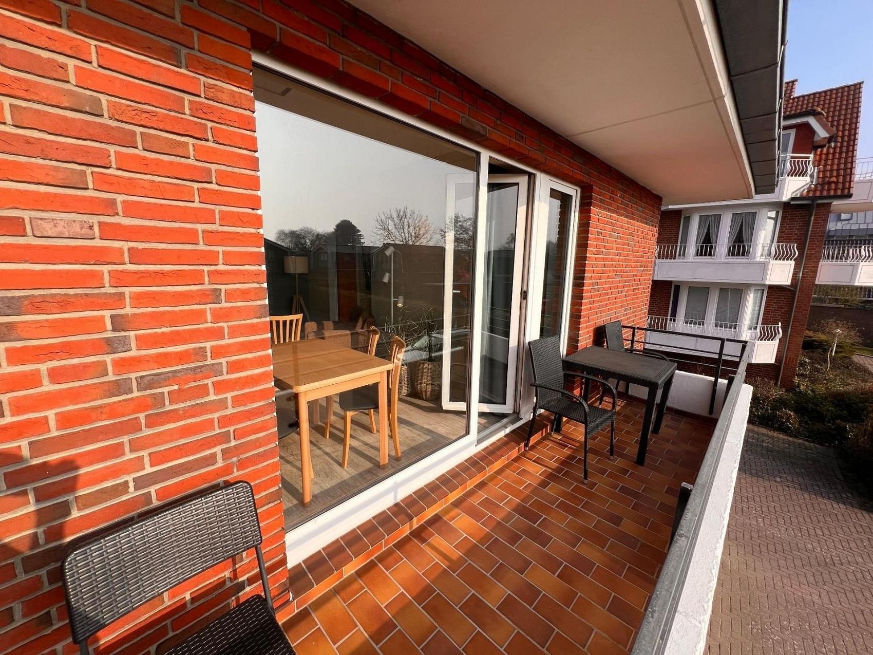 Gemütliche 3-Zimmer-Ferienwohnung in Cuxhaven-Duhnen mit Balkon und Poolblick.