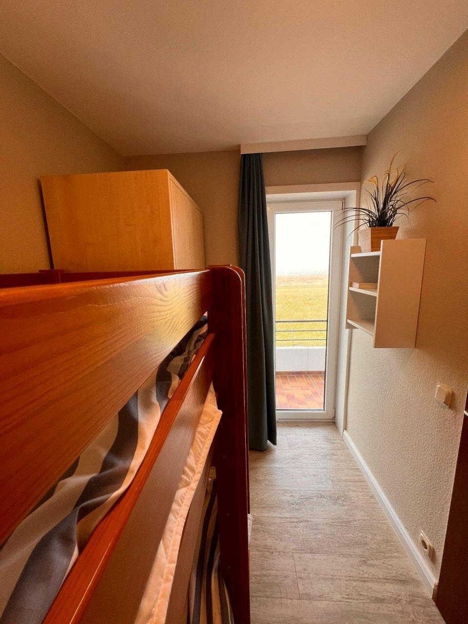 2-Zimmer Appartement im Haus "Nige Wark". Vom Etagenbett im Kinderzimmer, sowie aus der TV und Leseecke haben Sie einen wunderbaren Blick auf das UNESCO-Weltnaturerbe Wattenmeer und die Insel Neuwerk. Im Wohnzimmer befindet sich ein gemütliches Zweisitzer-Sofa, ein Sessel, ein Schrankbett (2x90x200) und ein Flat- TV sowie die integrierte Küchenzeile mit Spülmaschine, Mikrowelle und Kühlschrank mit Gefrierfach. Der ausziehbare Esstisch bietet genügend Platz für alle. Das Badezimmer ist mit einer Dusche und WC ausgestattet. Die ca. 35 qm große Wohnung liegt im 1. OG und verfügt zudem auch über einen Balkon.