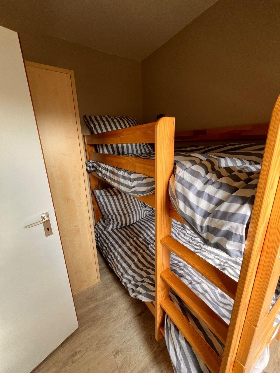 2-Zimmer Appartement im Haus "Nige Wark". In der TV-/Leseecke im Wohnzimmer befindet sich ein gemütliches Zweisitzer-Sofa, zwei Sessel und ein Flat- TV. Die integrierte Küchenzeile mit Spülmaschine, Mikrowelle und Kühlschrank mit Gefrierfach ist komplett ausgestattet und der ausziehbare Esstisch bietet genügend Platz für alle. Im Wohn-/Schlafraum befindet sich zusätzlich noch ein ein Schrankbett (2x90x200). Im Schlaf-/Kinderzimmer steht ein Etagenbett. Das Badezimmer ist mit einer Dusche und WC ausgestattet. Die ca. 40 qm große Wohnung liegt im 2. OG und verfügt zudem auch über einen Balkon zum Garten