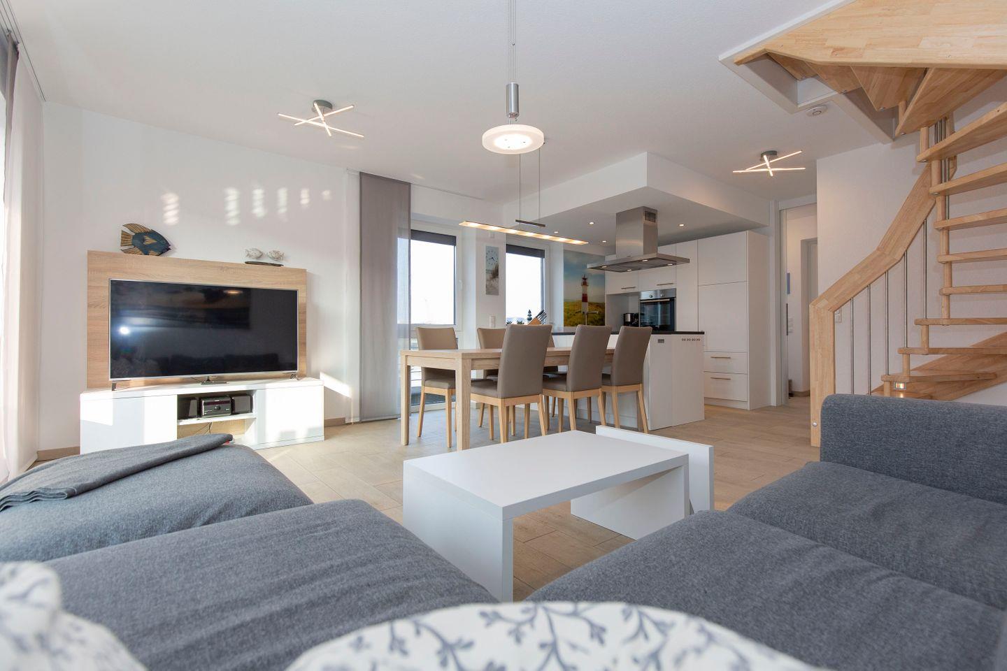 Auf 102 m² und 3 Etagen erwartet unsere Gäste in dieser Ferienwohnung maritime Urlaubsstimmung pur. Umgeben von Wasser punktet die Ende 2017 fertiggestellte FeWo in Cuxhaven mit einem top Ausblick auf den Yachthafen in Cuxhaven-City. Das Urlaubsdomizil punktet mit moderner Architektur und bietet Platz für 2 bis 6 Urlaubsgäste. Neben einer luxuriösen Ausstattung besticht die Ferienwohnung mit einer modernen, harmonischen Einrichtung. Maritimes Wohnen direkt am Hafen – hier fühlen sich Familien, Radfahrer, Segler und Wassersportbegeisterte gleichermaßen wohl.