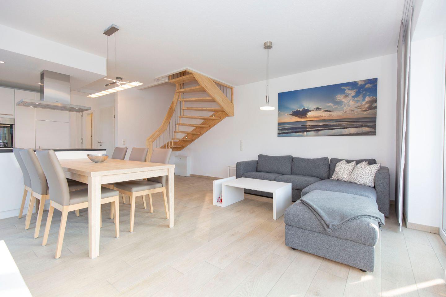 Haus "Marina", Typ1, Nr. 26-C, 2 bis 6 Personen, EG-2.te Etage, Lage am Yachthafen, Neubau, ca. 102 qm Wohnfläche auf 3 Etagen, im Erdgeschoss offene Küche mit Backofen, 4-Platten-Ceranfeld und Geschirrspüler, Wohnzimmer mit Flachbild-TV, WLAN, Zugang vom WZ auf die Terrasse, Gäste-WC, 1 OG: 2 sep. Schlafzimmer jeweils mit Doppelbett (1 Flachbild-TV), Bad mit Dusche, Wanne und WC, 2 OG: Schlafzimmer mit Doppelbett und Dachterrasse, 3. Flachbild-TV, Waschmaschine und Trockner im Abstellraum, Nichtraucher, Haustiere sind nicht gestattet, Außenstellplatz vor dem Haus, 2. PKW-Stellplatz in der Nähe, Abstellraum für Fahrräder geeignet vor dem Haus.