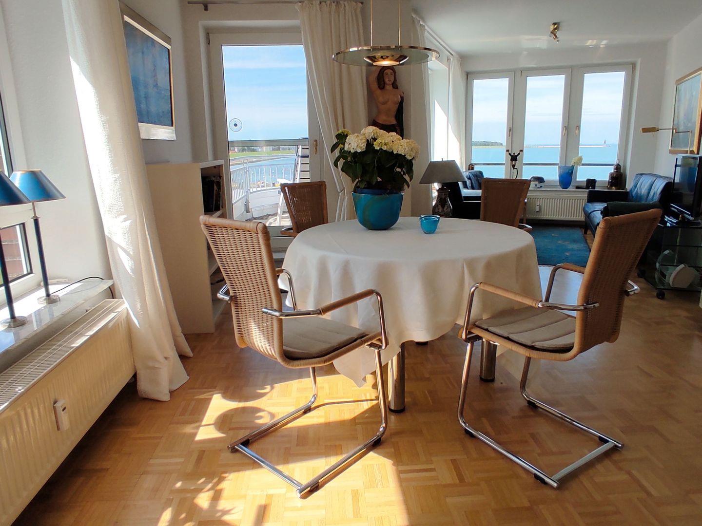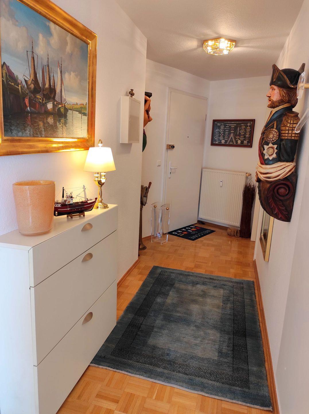 Moderne Ferienwohnung mit Seeblick und Balkon in Cuxhaven, ideal für Paare, mit WLAN, Küche und eigenem Parkplatz.