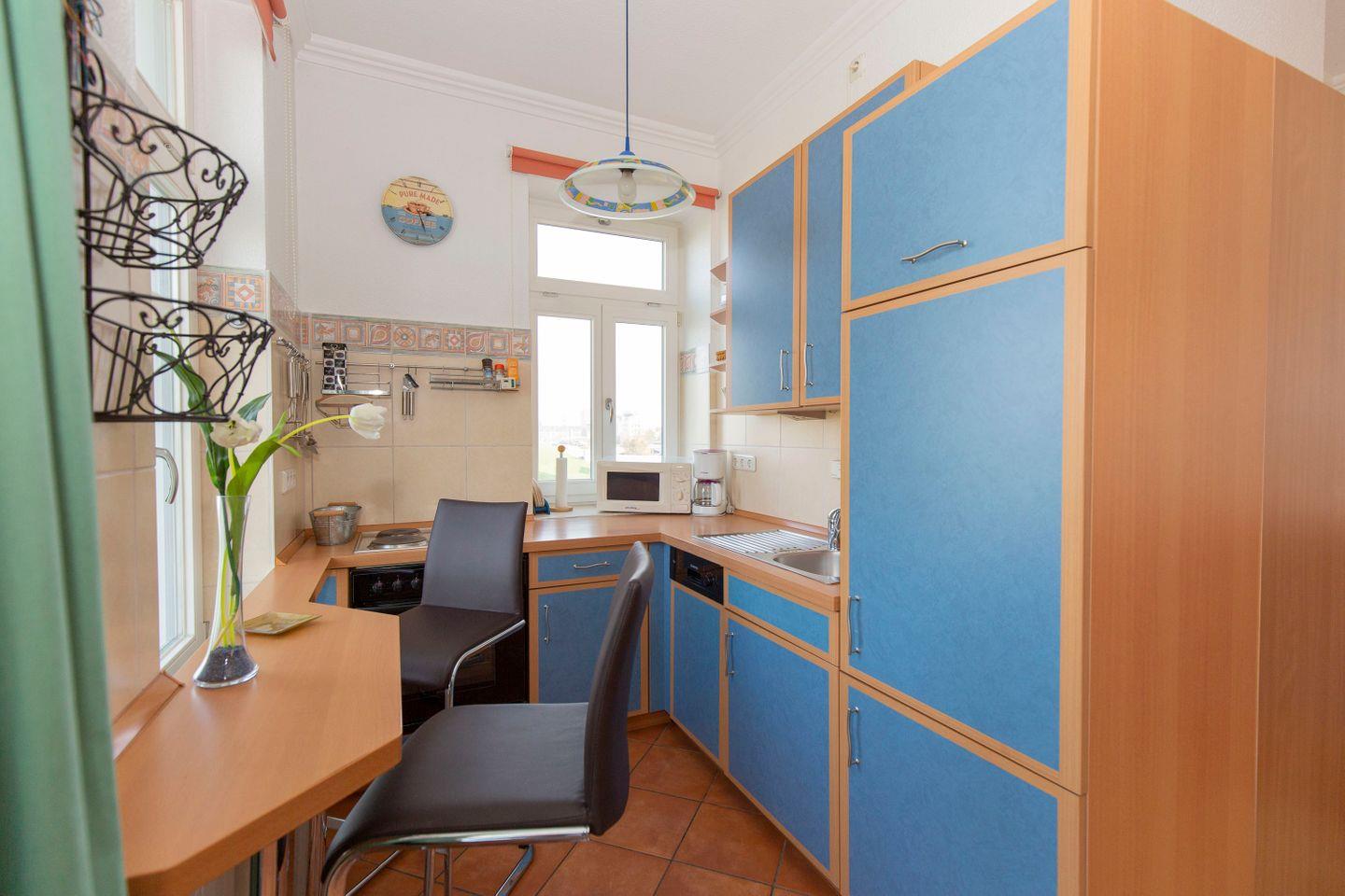 Haus "Zum Kronprinzen", Typ B, Whg.Nr. 4 (Deck), bis 3 Pers., 1. Etage, direkte Seesicht auf den Weltschifffahrtsweg, 48 qm Wohnfläche, Wohnbereich mit Schlafcouch, sep. Schlafzimmer mit Doppelbett, Dusche/WC, Küchenzeile mit 4-Platten-Herd, Geschirrspüler, Mikrowelle und Backofen, Kabel-TV, CD-Player, (Whg. ist komplett gefliest), Balkon, Aufzug, WLAN-Anschluss, USB-Blutooth-Radio, Haustiere sind nicht erlaubt, Nichtraucherwohnung
