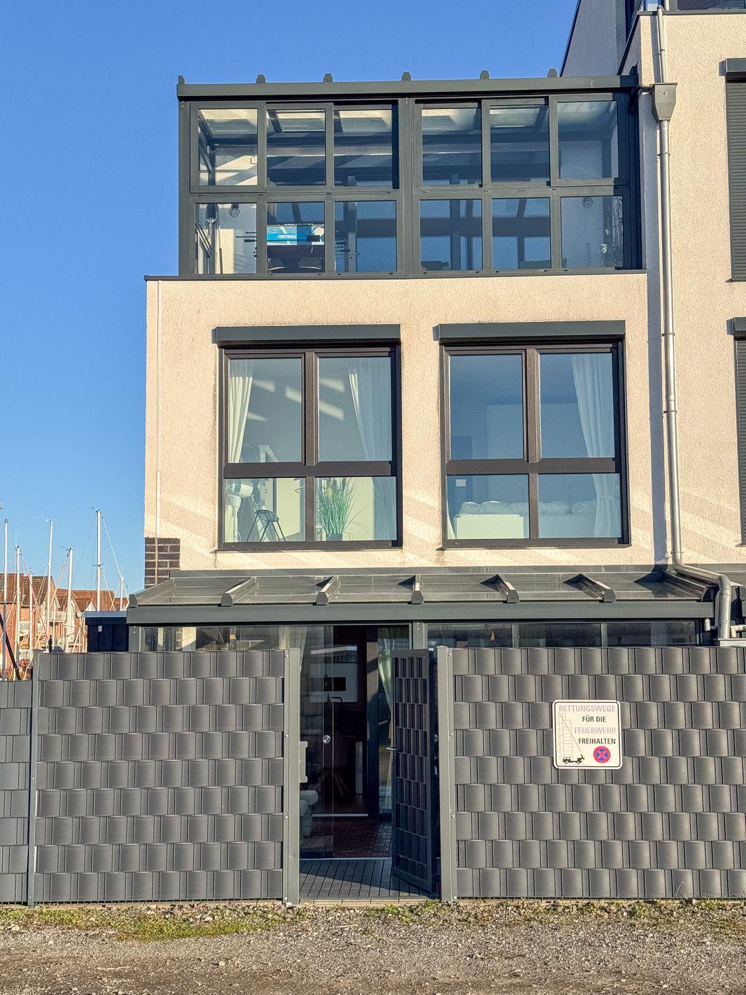 Modernes Ferienhaus Marina Nr.16 mit Wintergarten, Terrasse und Ladestation am Yachthafen in Cuxhaven-City.