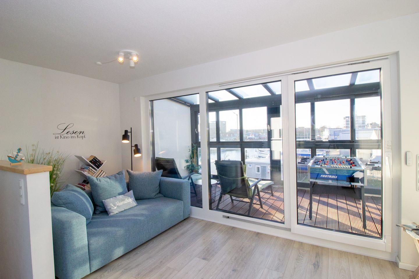 Im 2. OG befinden sich zusätzliche ein gemütlicher Nordbalkon und eine verglaste Loggia Richtung Süden, ausgestattet mit Liegen und einem Kicker zur Entspannung und Unterhaltung.