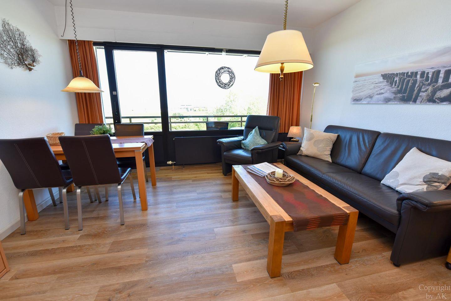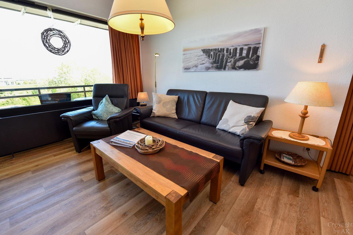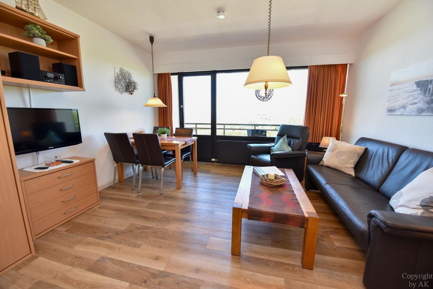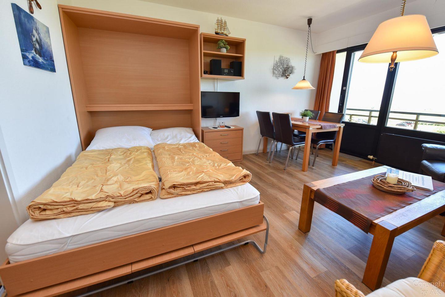 Schönes 2 Zimmer-Appartement mit toller Seesicht und großem Balkon im 3 OG, zu welchem auch ein eigener Strandkorb (01.05.-30.09) am Sandstrand gehört. In dem gemütlichem und mit Vinylboden ausgestattetem Appartement befindet sich im Wohn- und Essbereich u.a. ein Schrankbett (1,40x2,00m). In dem mit dem Wohnzimmer verbundenen und durch einen Vorhang getrennten Schlafraum finden Sie ein Ehebett. Vervollständigt wird dieses Appartement durch das WC/Duschbad (walk-in). Der kostenlose Tiefgaragenstellplatz hat eine Einstellhöhe von 195 cm. Zu der Wohnung gehört auch ein Dauerparkschein für die Nordfeldstraße und dem großen öffentlichen Parkplatz dem Haus gegenüber.