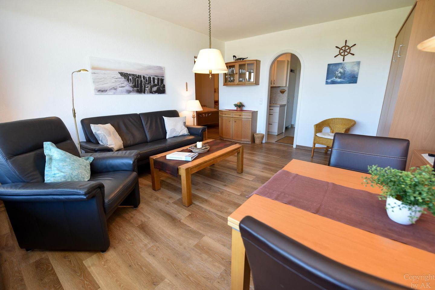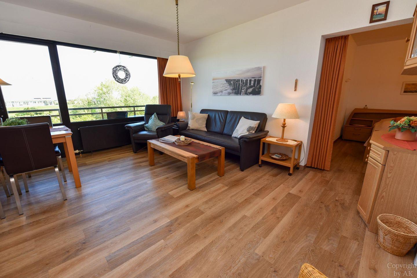 Charmantes 2-Zimmer-Appartement in Cuxhaven-Döse mit traumhafter Seesicht, großem Balkon und eigenem Strandkorb am Sandstrand.