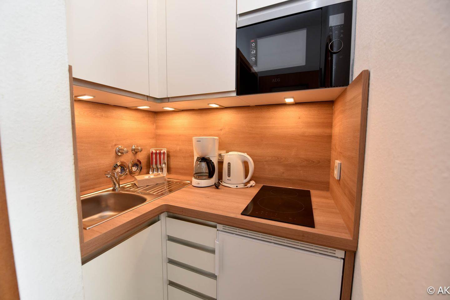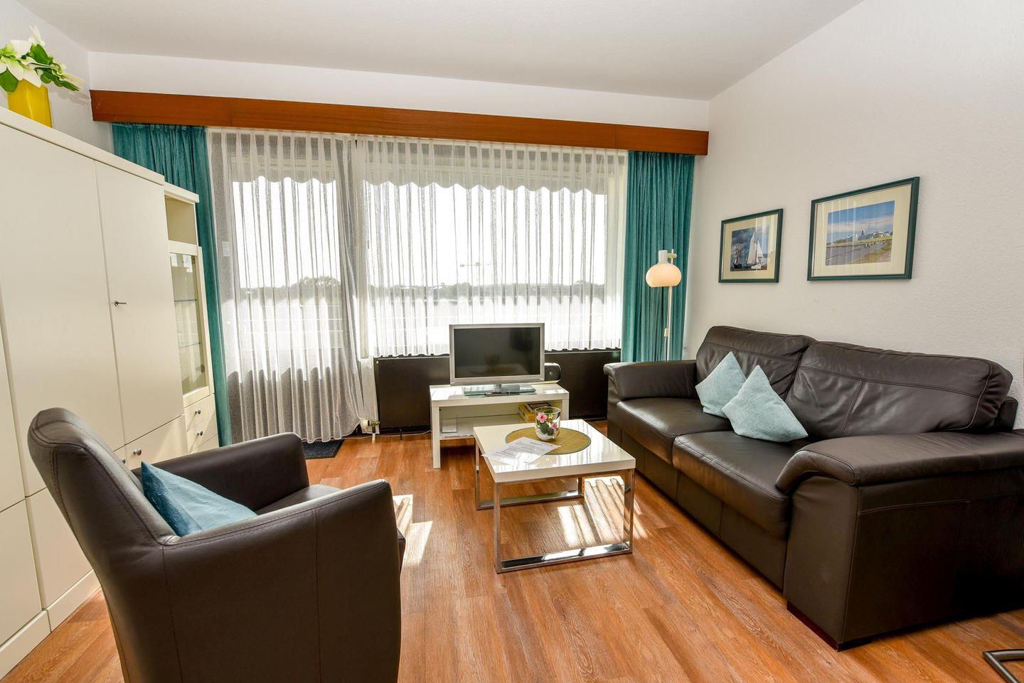1-Zimmer Appartement mit Südbalkon im 4. OG. Der Wohnbereich dieses für 2 Personen eingerichteten Appartements ist mit einem Doppelschrankbett, einem Sofa, einem Sessel, sowie einem Esstisch mit dazugehörigen Stühle ausgestattet. Es gibt eine integrierte Küchennische in der Sie kleine Mahlzeiten zaubern können. Zu dem Appartement gehört auch ein Strandkorb (01.05.-30.09.) am nur wenige Gehminuten entfernten Sandstrand von Döse. Ein Wannenbad rundet das Angebot ab. Der kostenlose Tiefgaragenplatz hat eine Einstellhöhe von 149 cm.