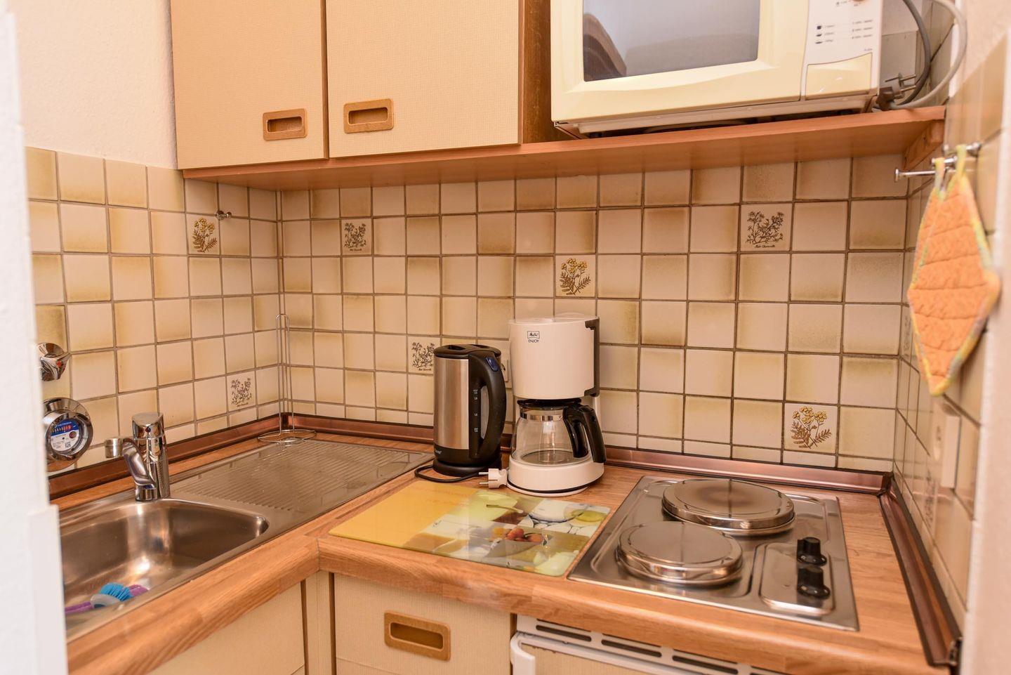 3-Zimmer Appartement im 4. OG mit großen Südbalkon. Komfortabler Wohnbereich mit Fliesen für 2-4 Personen, u.a. ausgestattet mit einem Sofa, zwei Sesseln und einem Esstisch für vier Personen. Separate Küchenzeile mit Mikrowelle, Kaffeemaschine, Wasserkocher und Toaster. Ein Schlafraum mit Boxspringbett und großem Kleiderschrank und Oberlichtfenster zum zweiten Schlafraum, in welchem ein 140cm x 200cm Bett steht. Es gibt einen Flachbild TV mit DVD-Player. Das Badezimmer ist mit einer Dusche und dem WC ausgestattet. Der kostenlose Tiefgaragenstellplatz hat eine Einstellhöhe von 1,49 m. Der Eigentümer stellt seinen Gästen aber auch einen Parkausweis für den städtischen Parkplatz vor dem Haus zur Verfügung. ( 01.01.- 31.12.