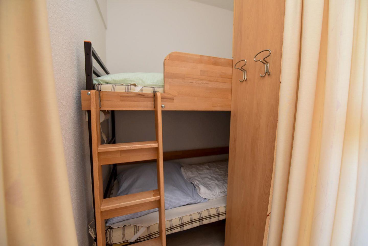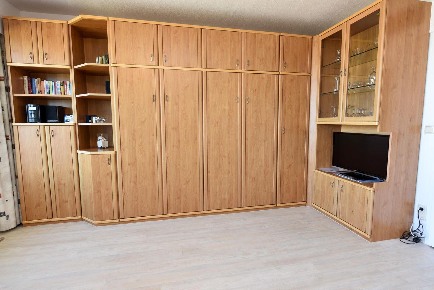 1-Zimmer Appartement für 2-3 Personen im 4. OG mit super Seesicht inklusive eigenem Strandkorb (01.05.-30.09.). Das Appartement wurde 2019 umfangreich und aufwendig renoviert. Im Wohnbereich befindet sich eine Kochnische mit Essbereich. Eine Sitzecke aus Couch, Sessel und Couchtisch lädt zum gemütlichen Verweilen ein. Als Schlafgelegenheit dient ein Doppelbett in Form eines Schrankbetts. Zusätzlich ist ein Etagenbett (90x190) abgetrennt im Flurbereich vorhanden. WC/Duschbad. Parkmöglichkeit besteht auf dem Tiefgaragenstellplatz (Einstellhöhe 149cm), oder mit einem kostenlosen Dauerparkschein ( vom 01.01. - 31.12. ) an der Nordfeldstraße, oder auf dem großen Parkplatz gegenüber.