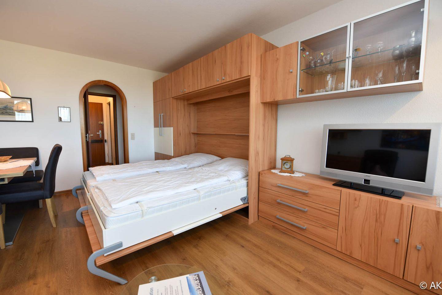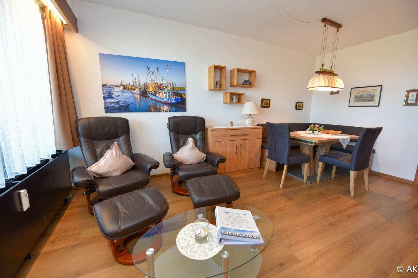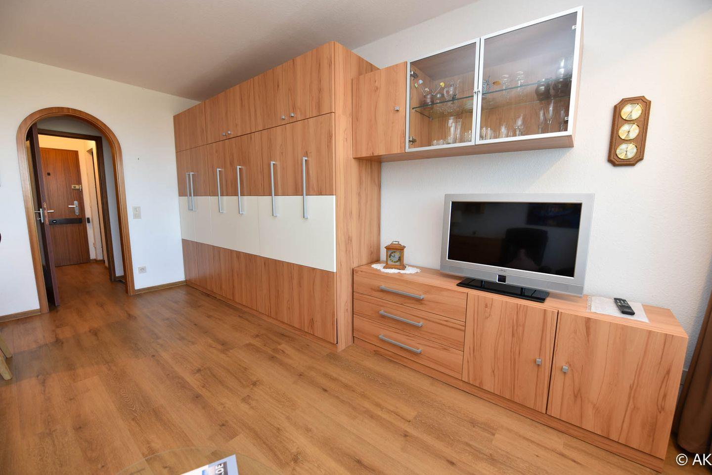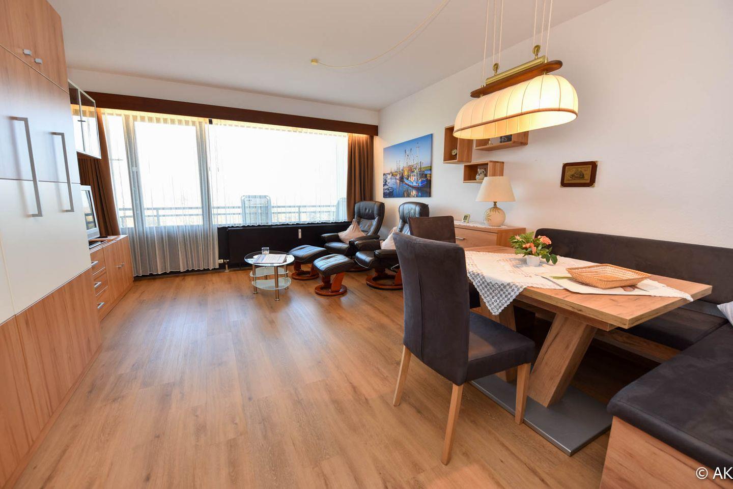1-Zimmer Appartement im 4. OG mit neuem Vinyl-Boden, toller Sicht auf den Weltschifffahrtsweg und eigenem Strandkorb (01.05.-30.09.) am schönen Sandstrand von Döse. Komfortabel für 2 Personen mit einer separaten , voll ausgestatteten Küchennische mit 2 Plattenherd und Kühlschrank .Im Wohnbereich gibt es einen Esstisch mit Sitzbank, sowie ein Schrankbett und zwei gemütliche Relaxsessel. Es gibt Kabel TV. Das Bad hat ein Wannenbad und zwei Waschbecken. Zu dem Appartement gehört auch ein großer Balkon. Der Tiefgaragenstellplatz hat eine Einstellhöhe von 149 cm. Der Eigentümer stellt seinen Gästen aber auch einen Parkausweis für den städtischen Parkplatz vor dem Haus zur Verfügung.