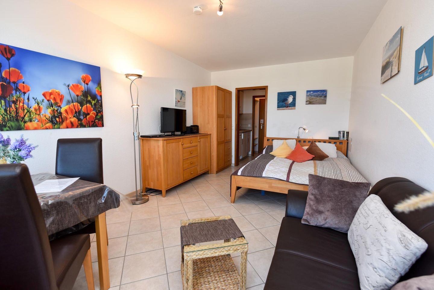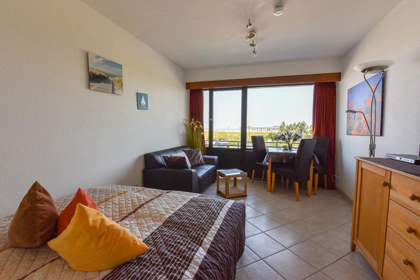 Charmantes 1-Zimmer-Ferienappartement mit Seeblick in Cuxhaven-Döse, ideal für erholsame Tage am Strand.