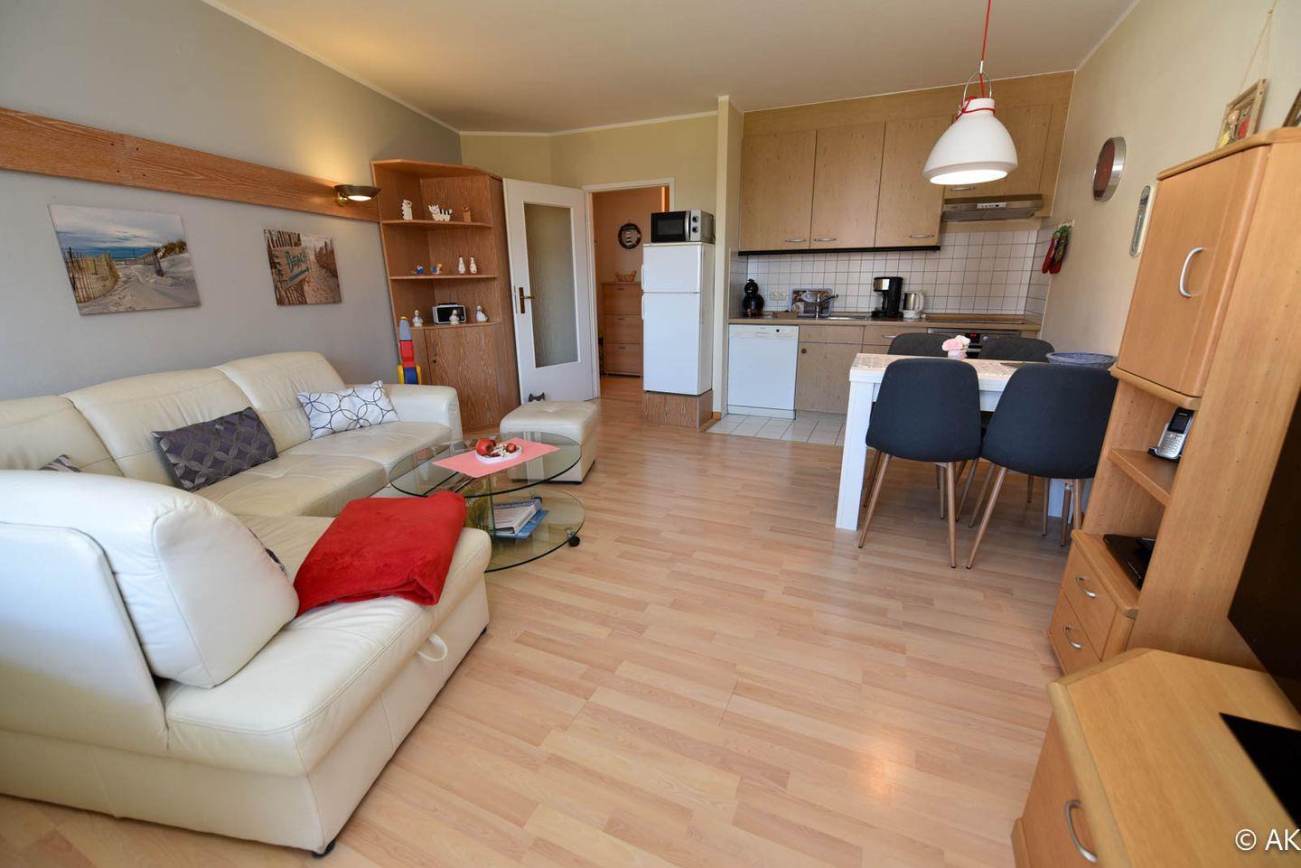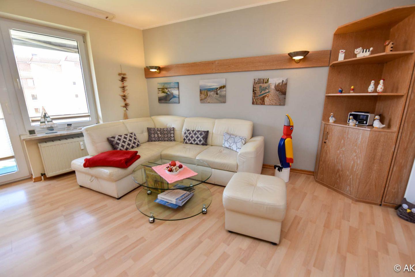 Herzlich willkommen in dieser schönen 2-Zimmer-Ferienwohnung im Haus Kormoran, gelegen im 2. Stock und perfekt ausgerichtet in Süd-West-Lage.
