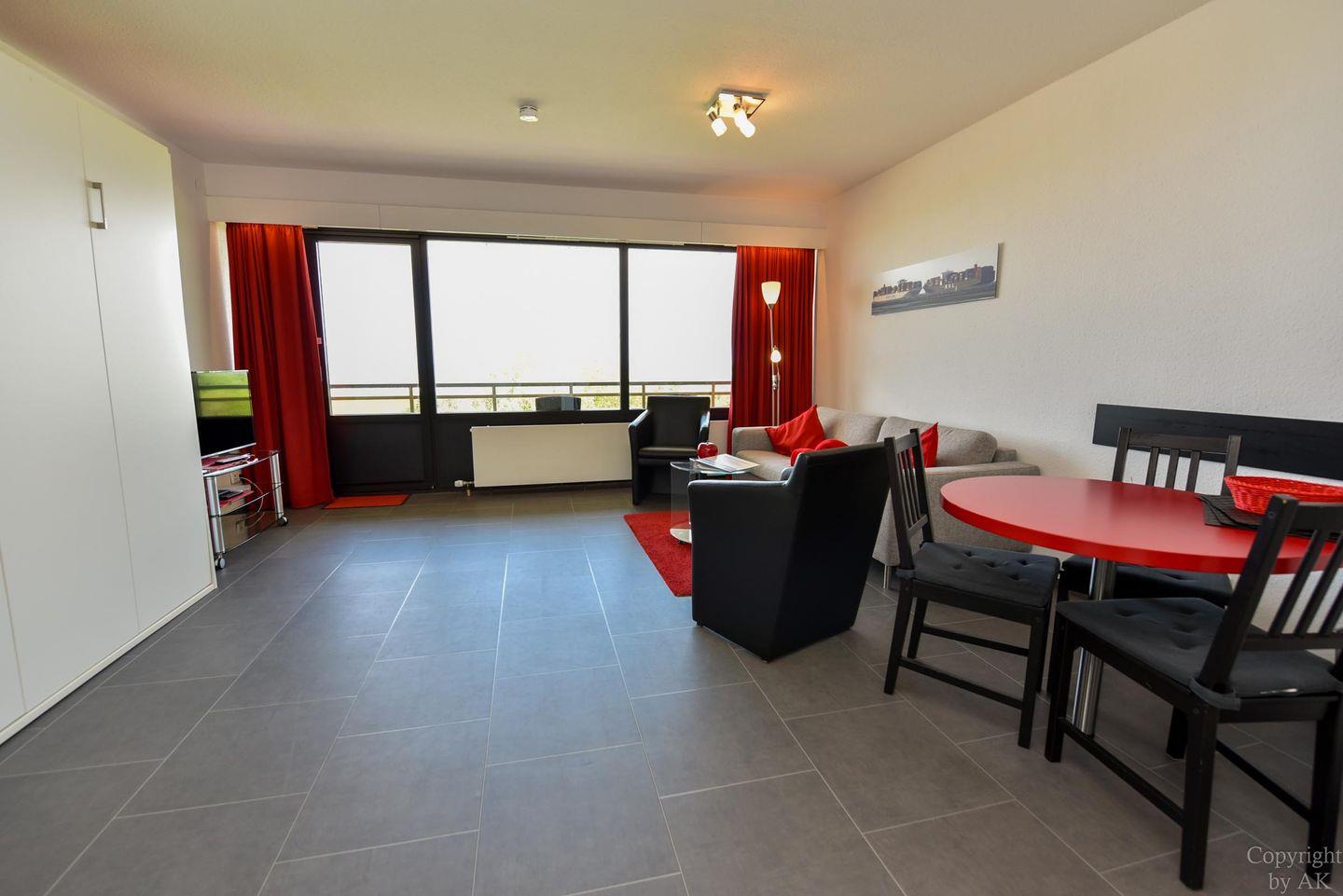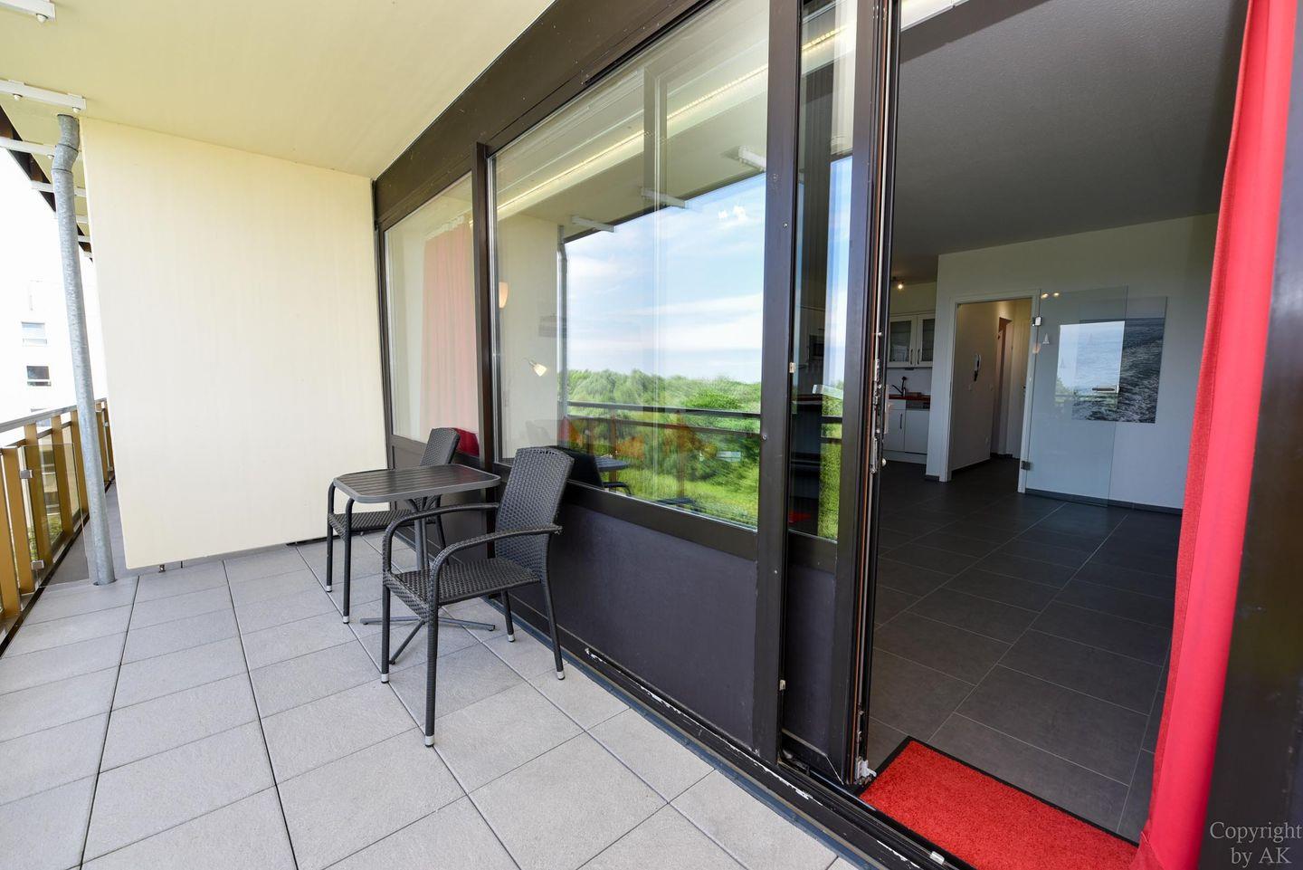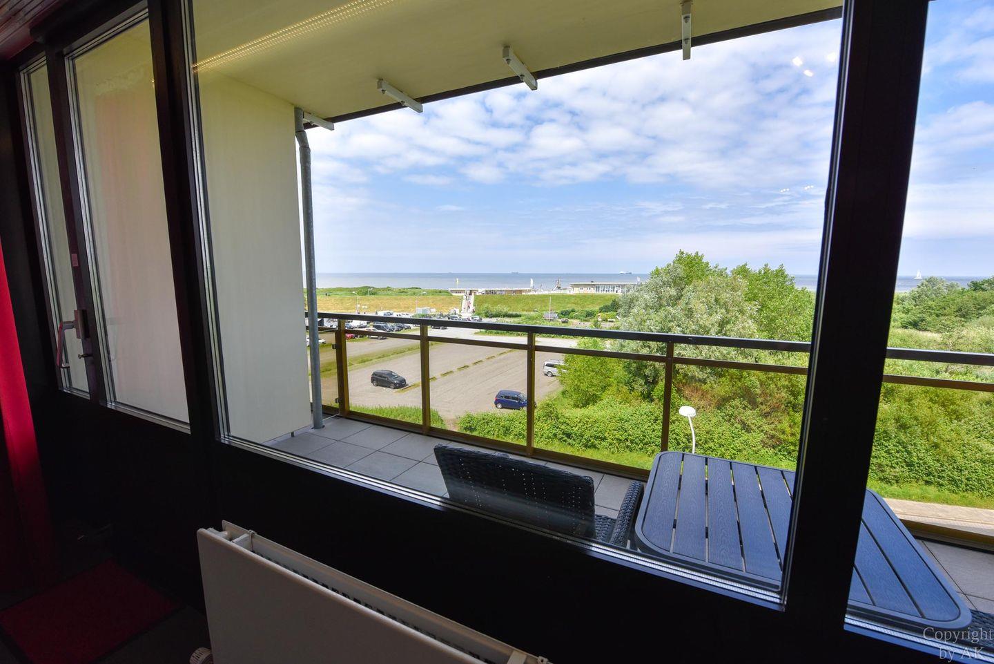 Modernes 1-Zimmer Ferienappartement mit Balkon und Seeblick am Sandstrand in Cuxhaven-Döse.