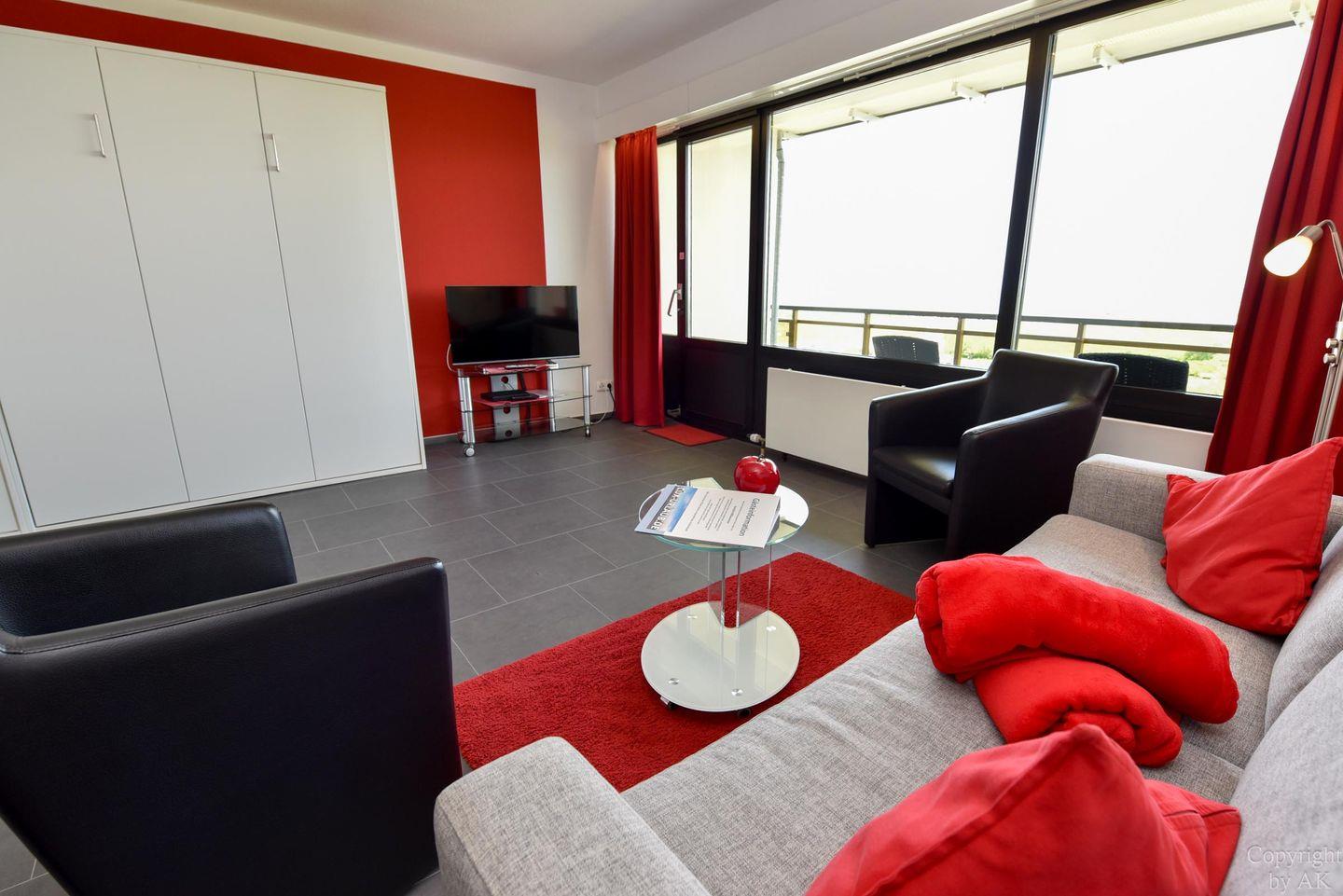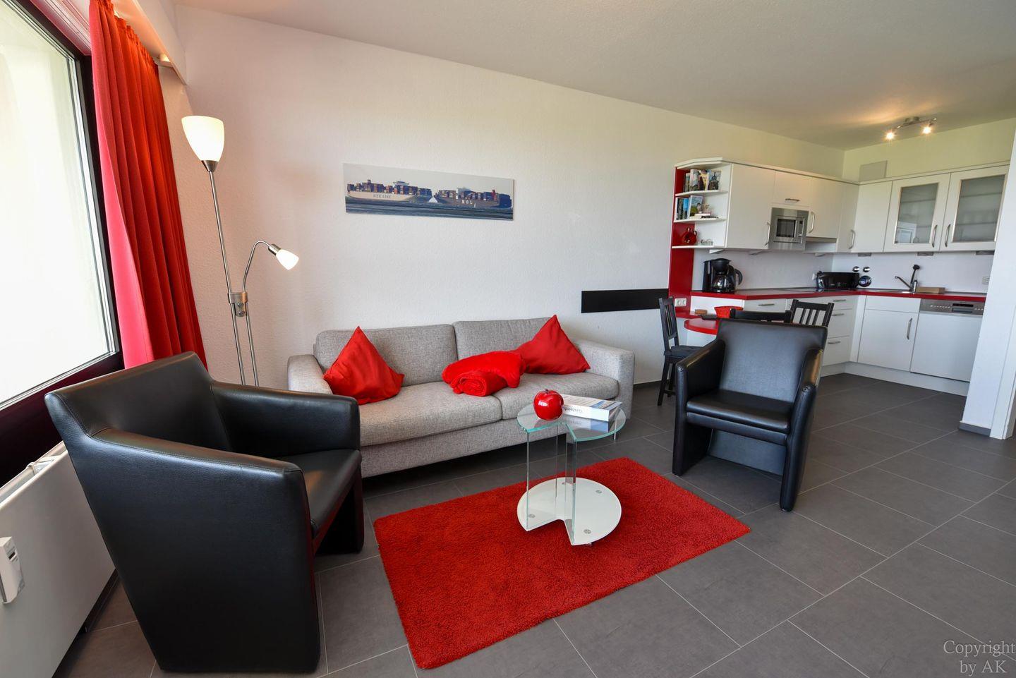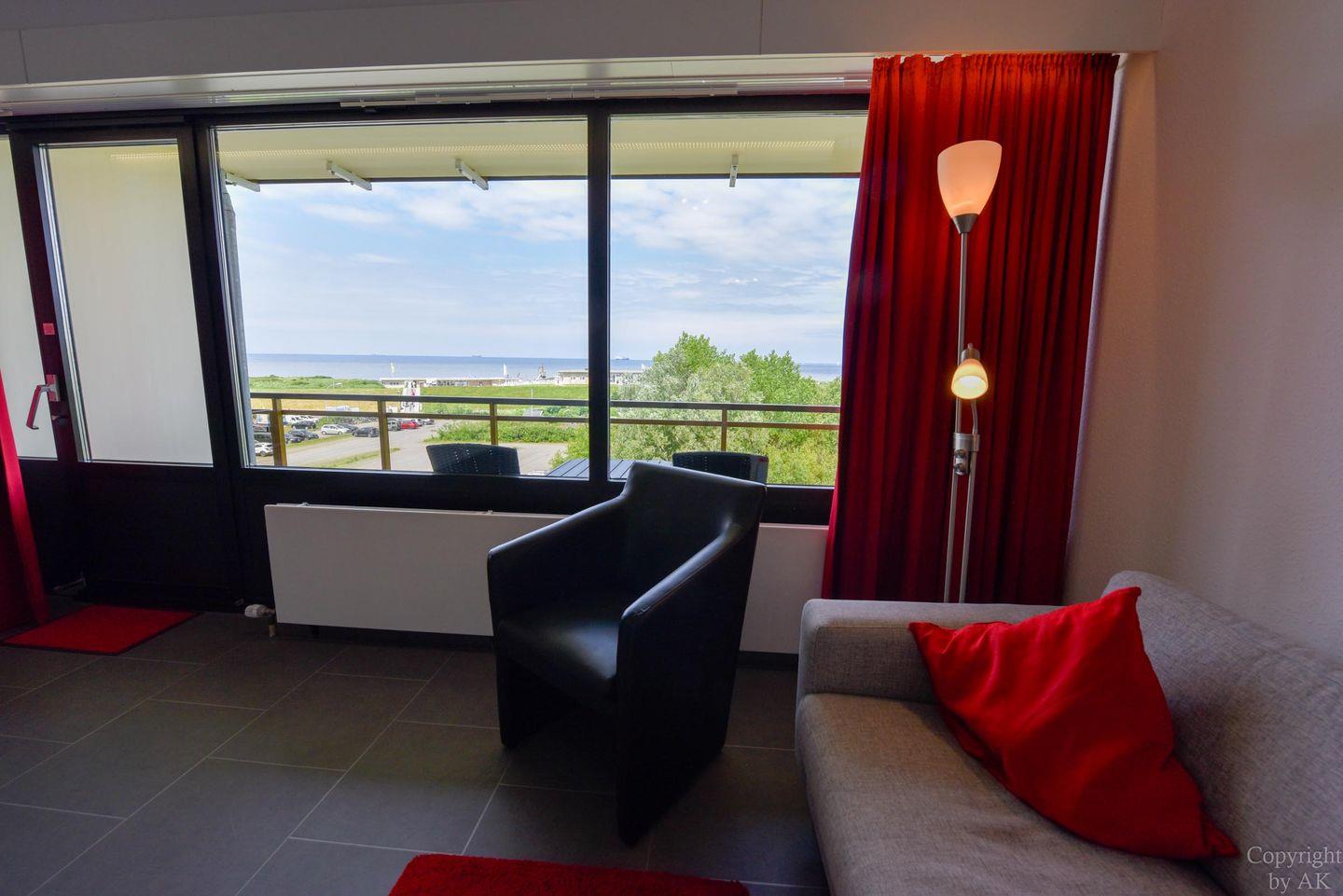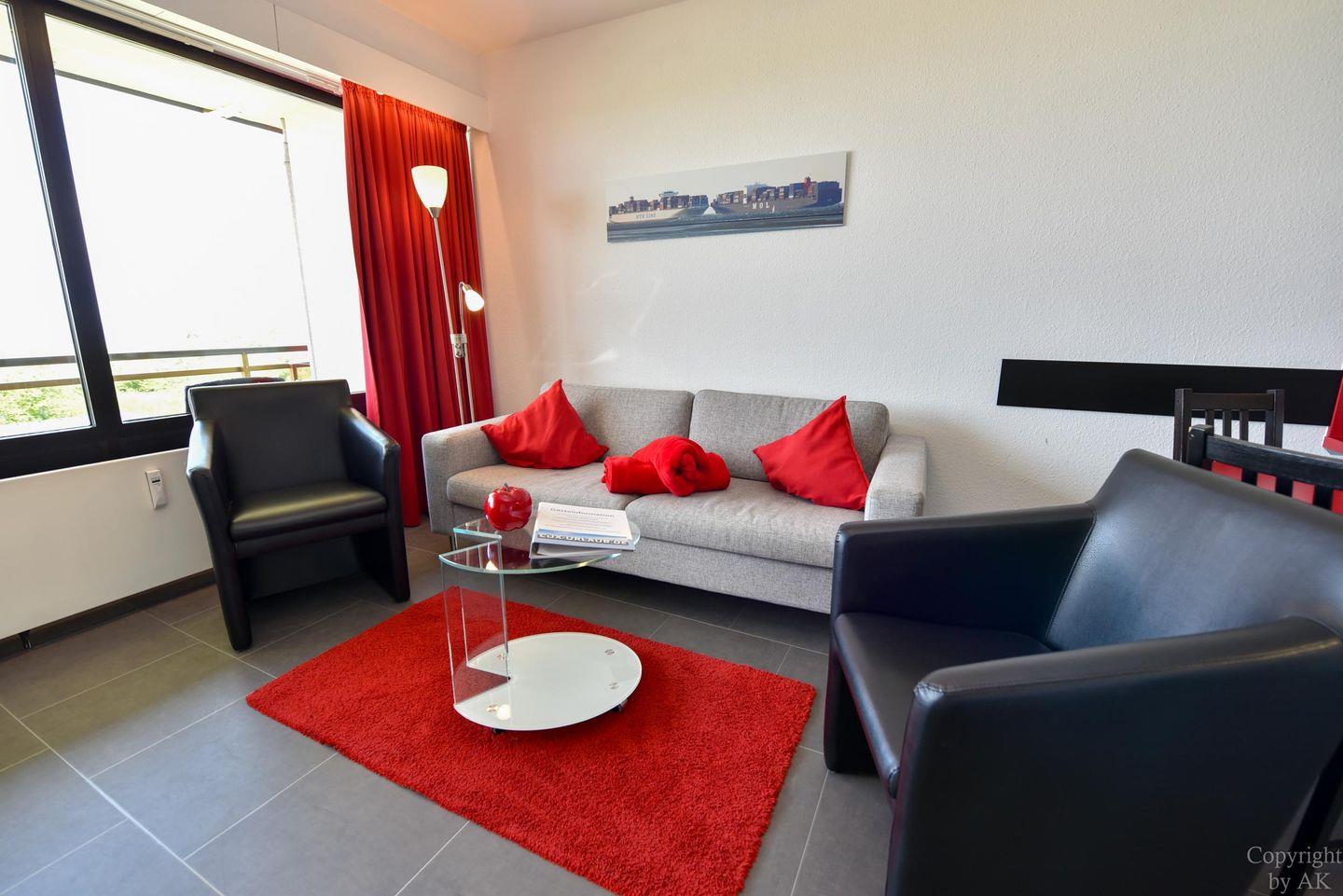 Modernes 1-Zimmer Ferienappartement mit Balkon und Seeblick am Sandstrand in Cuxhaven-Döse.