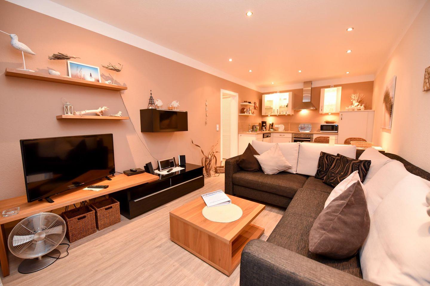 2 Zimmer Ferienappartement im Erdgeschoss im Haus JAN AM STRAND. Das nach Süden gelegene Ferienappartement ist hochwertig und komfortabel eingerichtet. Im Schlafzimmer befindet sich ein bequemes Doppelbett und im Wohnzimmer bietet eine Schlafcouch eine zusätzliche Schlafmöglichkeit. Die komplett ausgestattete Küche erlaubt es Ihnen sich selbst zu verpflegen. Zu der Wohnung gehört auch ein Tiefgaragenstellplatz mit einer Einstellhöhe von 149cm und ein Parkschein der Ihnen das kostenlose parken auf dem öffentlichen Parkplatz vom 01.01. - 31.12. gegenüber erlaubt.
