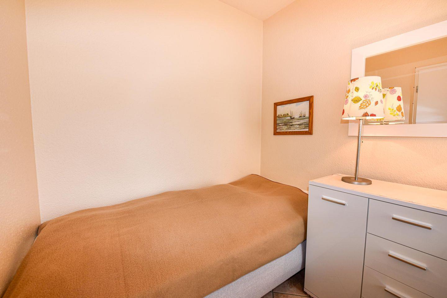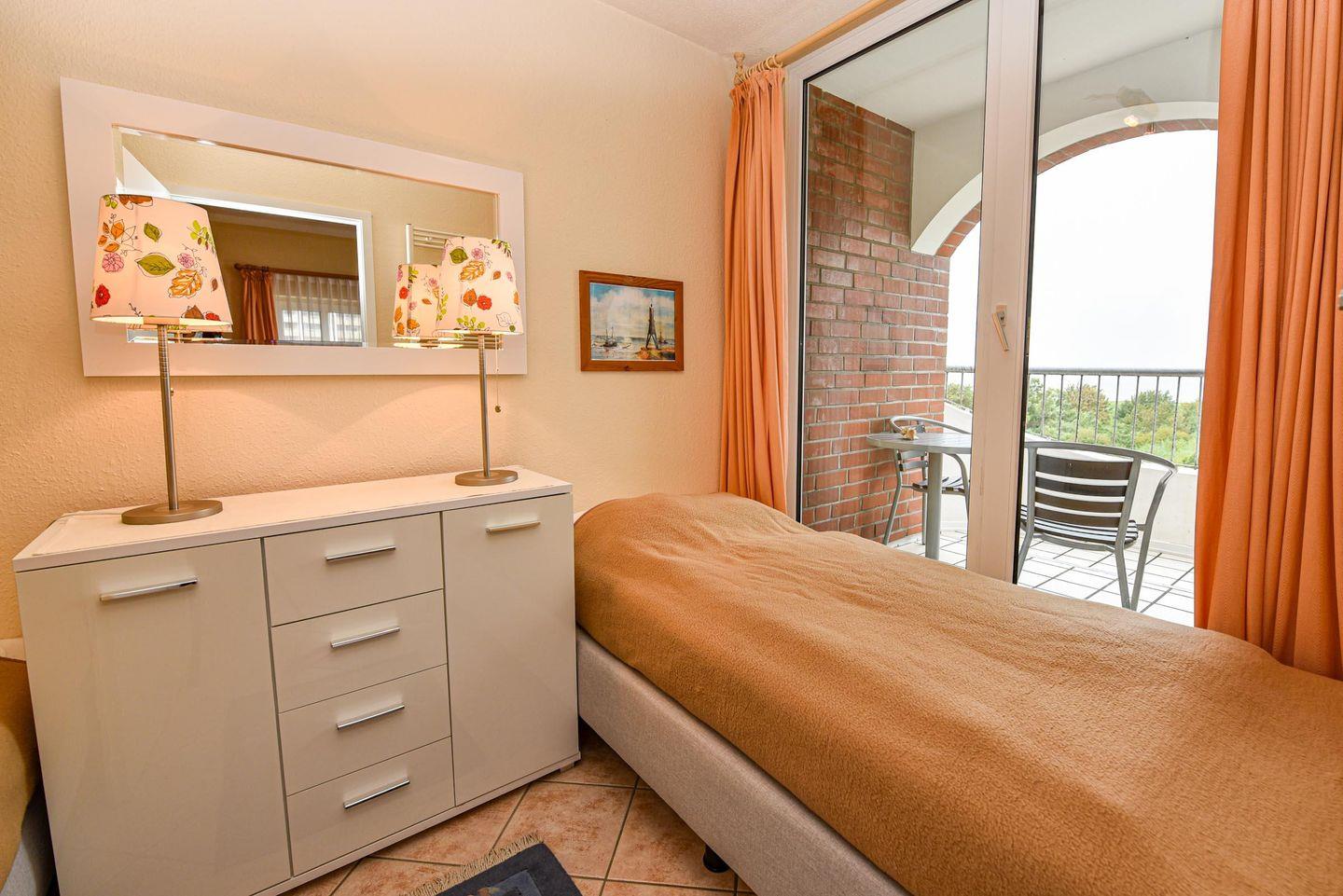 Komfortables 2-Zimmer Appartement mit Seeblick im 4.OG im Haus DEICHGRAF. Allergikerfreundlich gefliestes Seeblick-Appartement mit kleinem Balkon. Im Wohn- / Essraum befindet sich eine Schlafcouch, ein dazu passender Sessel sowie ein Esstisch von welchem aus Sie einen herrlichen Blick auf das Wattenmeer und den Weltschifffahrtsweg haben. Der Schlafraum ist mit zwei Einzelbetten ausgestattet. Es gibt eine offene Küchenzeile mit Back-Mikrowelle, Vierplattenherd und Geschirrspülautomat. Dazu bietet das Appartement ein großzügiges und barrierefreies Duschbad mit einem Duschsitz für komfortables und sicheres Duschen im Sitzen. Kostenloser PKW-Stellplatz.