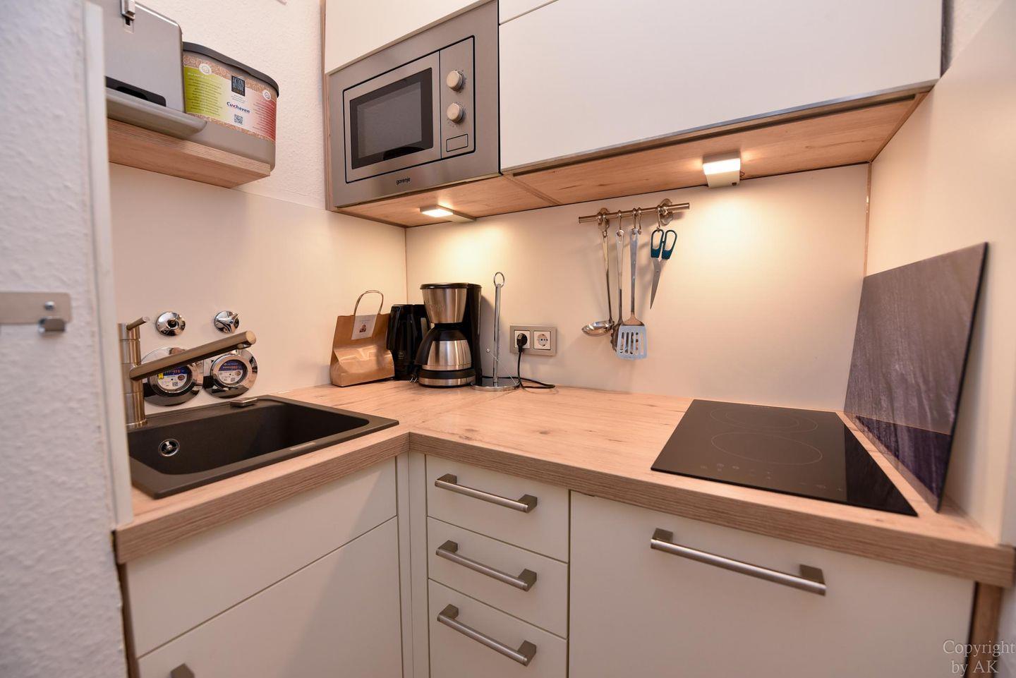 Gemütliches und frisch (2019) renoviertes 3-Zimmer Appartement im 1. OG mit Südbalkon. Im Wohn- und Essbereich befindet sich unter anderem ein Schlafsofa und ein bequemer Sessel der zum entspannen und TV schauen oder lesen einlädt. Dazu ist der Raum mit einem Esstisch ausgestattet. Der durch eine Falttür vom Wohnraum getrennte Schlafraum verfügt über ein Ehebett und einen großen Kleiderschrank. Im zweiten Schlafraum befindet sich ein freundliches Etagenbett und ein Kleiderschrank, sowie ein Tisch mit 2 Stühlen. In der separaten und gut ausgestatteten Küchennische ist ein Geschirrspüler und eine Mikrowelle untergebracht. Das moderne Bad mit geräumiger Dusche vervollständigt dieses schöne Appartement im Haus "Jan am Strand". Der dazugehörige und kostenlose Tiefgaragenstellplatz hat eine Einstellhöhe von 149 cm.