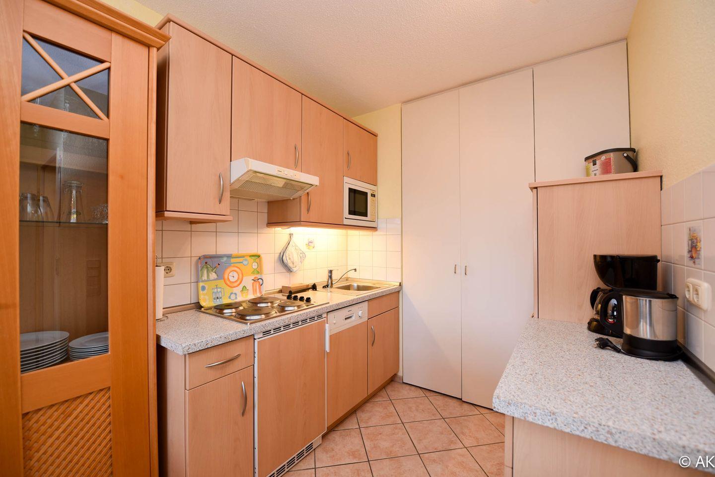 Die integrierte Küchenzeile ist mit allen Annehmlichkeiten wie Mikrowelle und Geschirrspüler ausgestattet, um Ihren Aufenthalt so angenehm wie möglich zu gestalten.