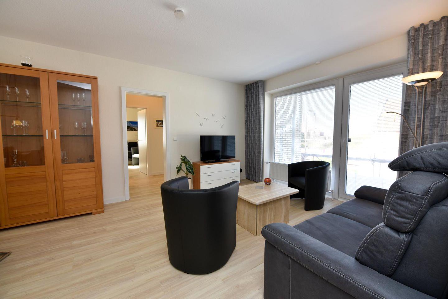 Moderne 3-Raum-Ferienwohnung Strandnixe 303 in Cuxhaven-Döse mit Fahrstuhl, Balkon und eigenem PKW-Stellplatz.