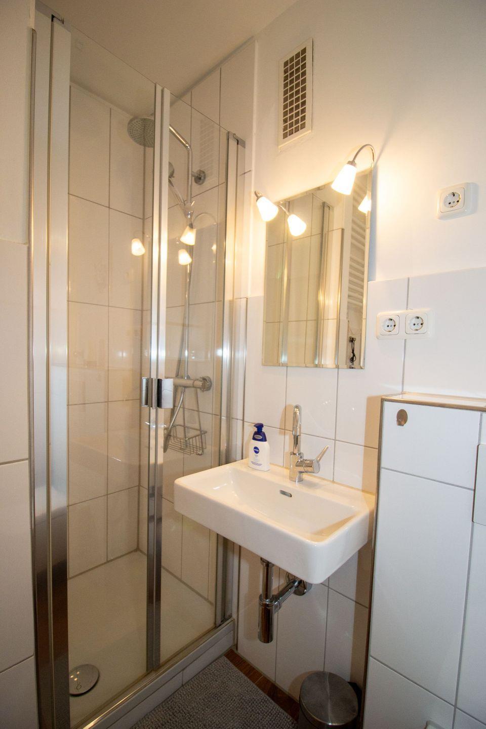 Haus Atlantic in Döse, Fewo im 2. OG, bis 2 Pers., ca. 35 qm Größe, kombiniertes Wohn-/Schlafzimmer mit Boxspringbett, Bettwäsche und Handtücher sind nicht inklusive, Küchenzeile mit 2-Platten-Ceranfeld, Mikrowelle, Dusche/WC, Pkw-Außenstellplatz, keine Haustiere erlaubt, Nichtraucherwohnung, Strandkorb in der Saison 2025 (von ca. Mitte April bis ca. Mitte Oktober)